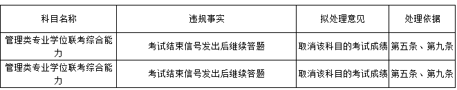內蒙古2020年研究生考試違規處理決定