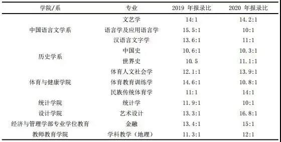 由于院校眾多,因此這里只能展示部分院校。每所院校的報錄比情況都不一樣,同一所院校每年的報錄比情況也在發生變化。