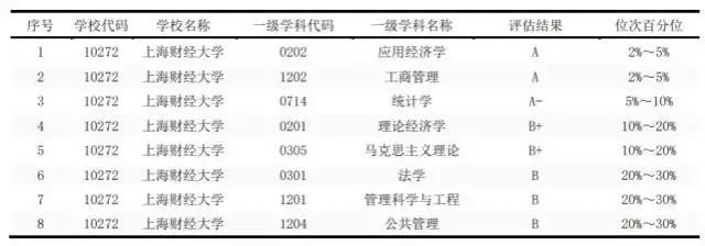 A級學科(包括A+、A、A-)共12個:
