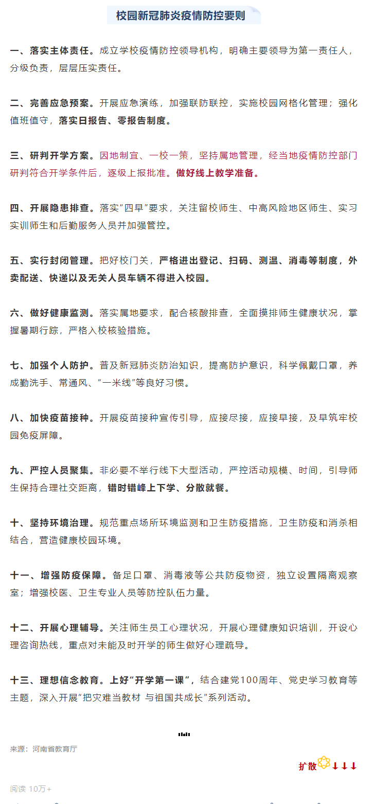 文中明確指出:因地制宜、一校一策,堅持屬地管理,經(jīng)當(dāng)?shù)匾咔榉揽夭块T研判符合開學(xué)條件后,逐級上報批準。做好線上教學(xué)準備。