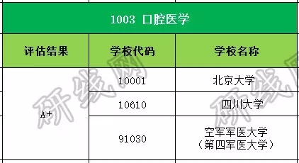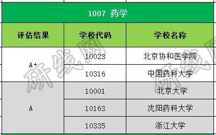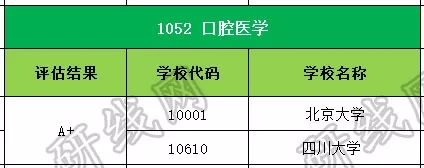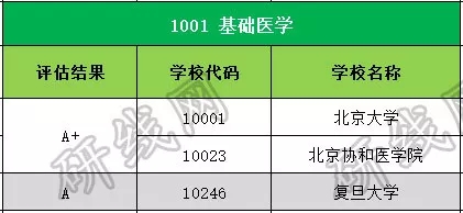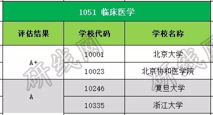 其中醫學學科高校評估結果為A及A以上等級的學校名稱及代碼如下: