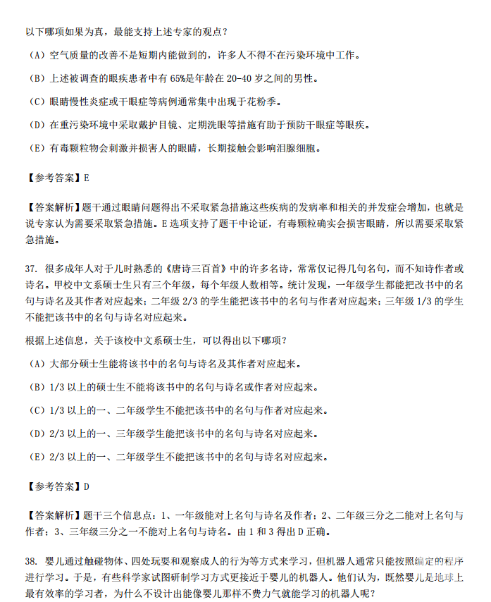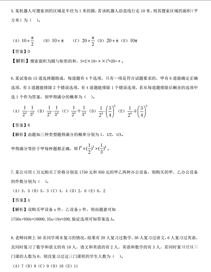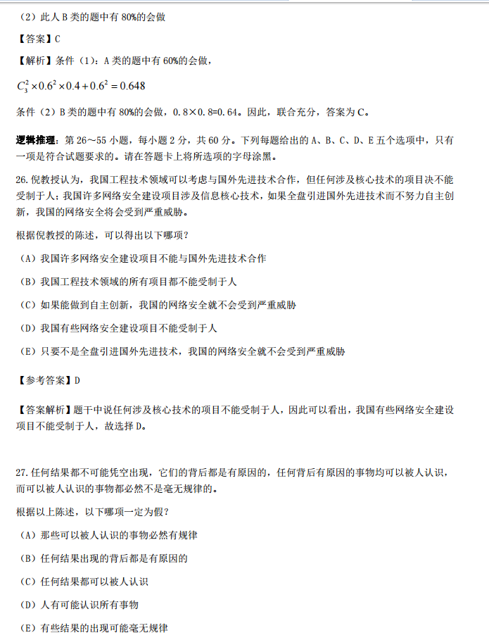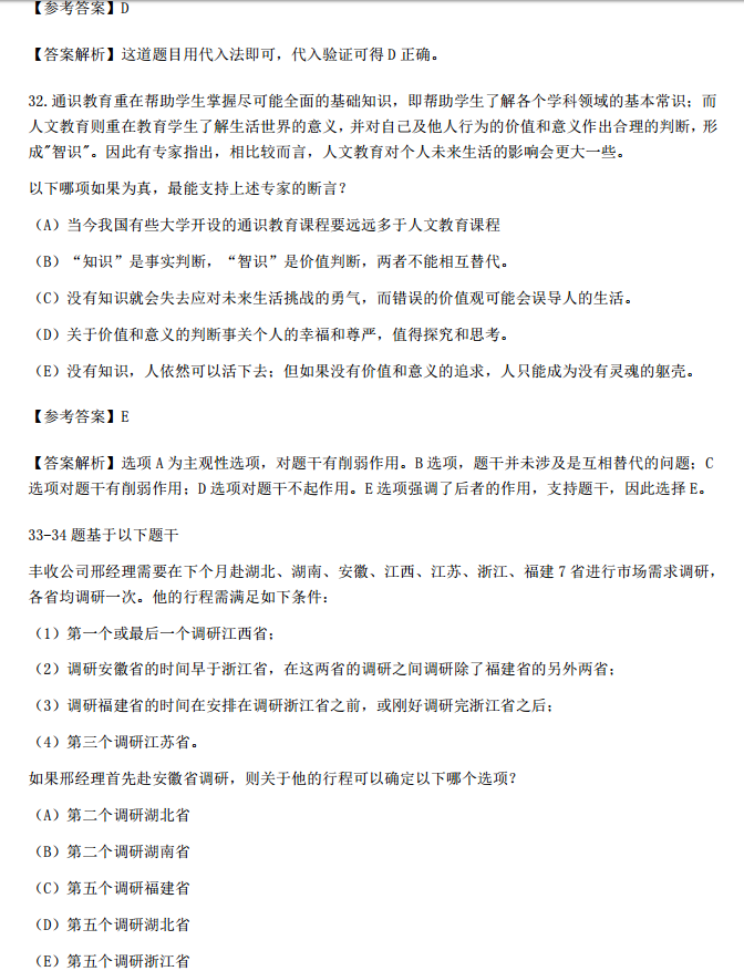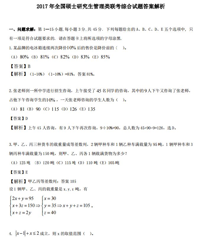 2017年全國碩士研究生管理類聯考綜合試題答案解析