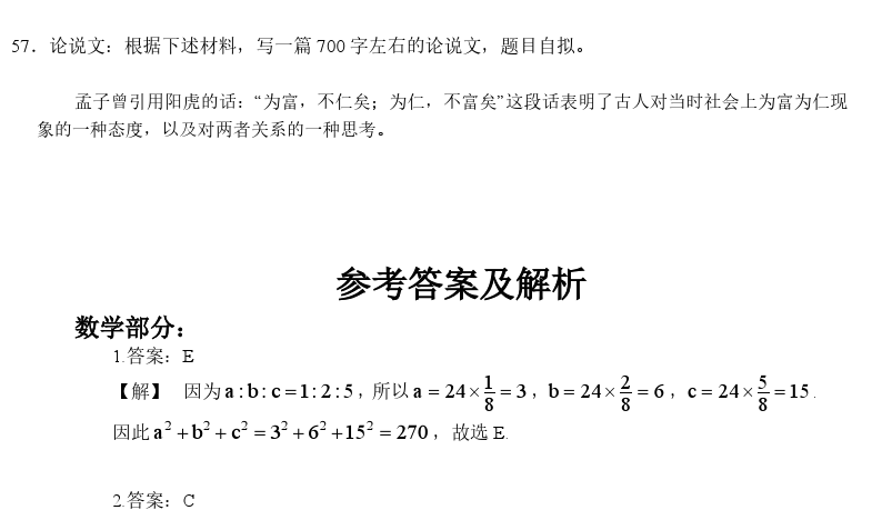 2015年管理類聯(lián)考綜合真題及答案解析