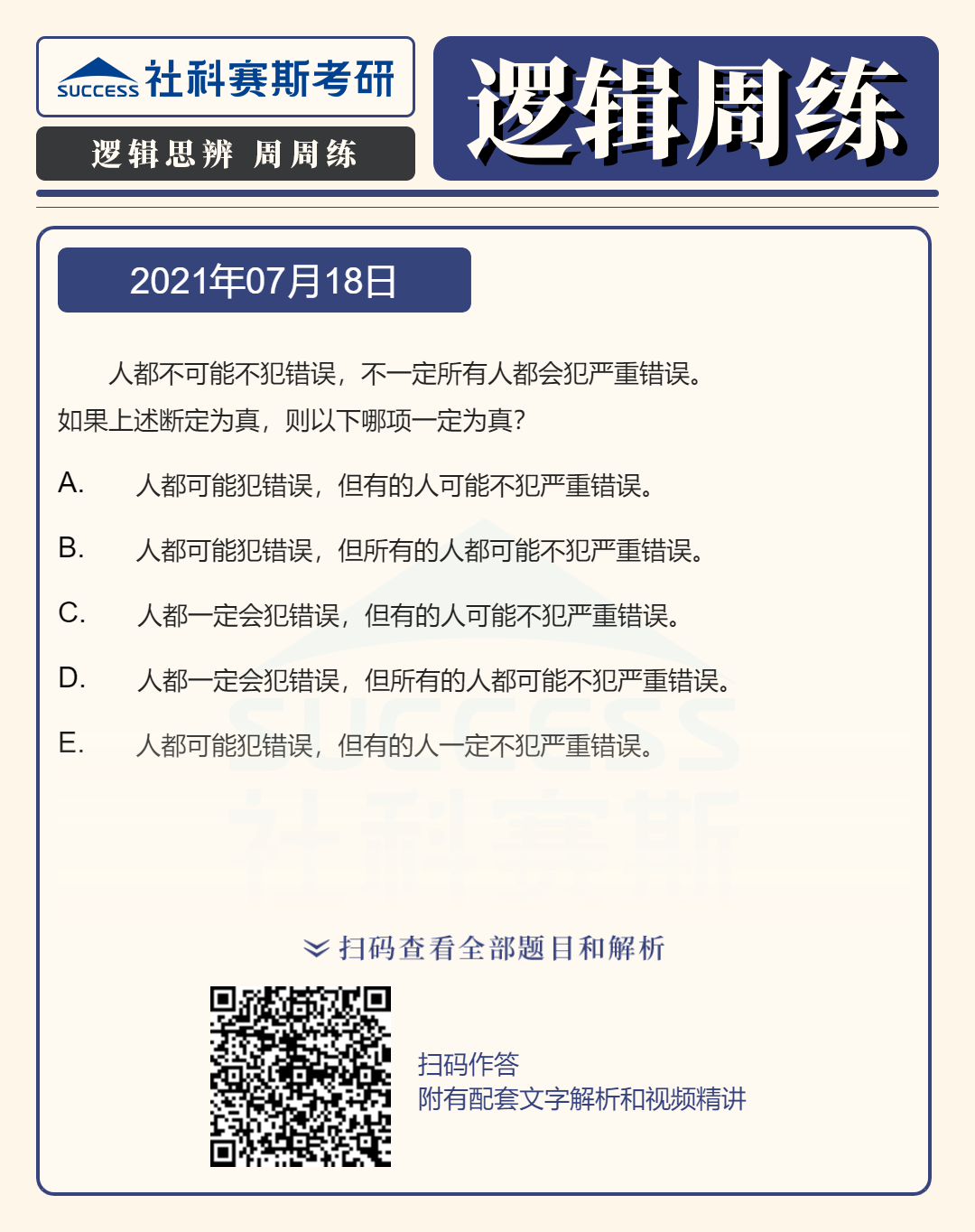 以上就是社科賽斯考研網(wǎng)小編為大家整理邏輯專項(xiàng)練習(xí):7月18日邏輯專項(xiàng)練習(xí)及答案的全部?jī)?nèi)容,希望各位考生堅(jiān)持利用起來(lái),想要獲取更多內(nèi)容請(qǐng)持續(xù)關(guān)注社科賽斯考研網(wǎng)。