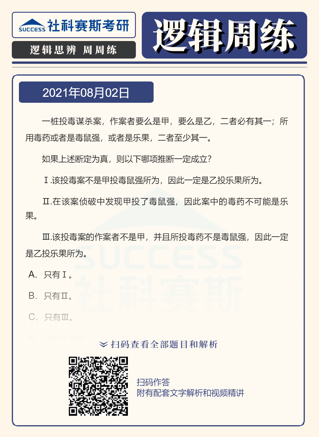 以上就是社科賽斯考研網小編為大家整理邏輯專項練習:8月2日邏輯專項練習及答案的全部內容,希望各位考生堅持利用起來,想要獲取更多內容請持續關注社科賽斯考研網。
