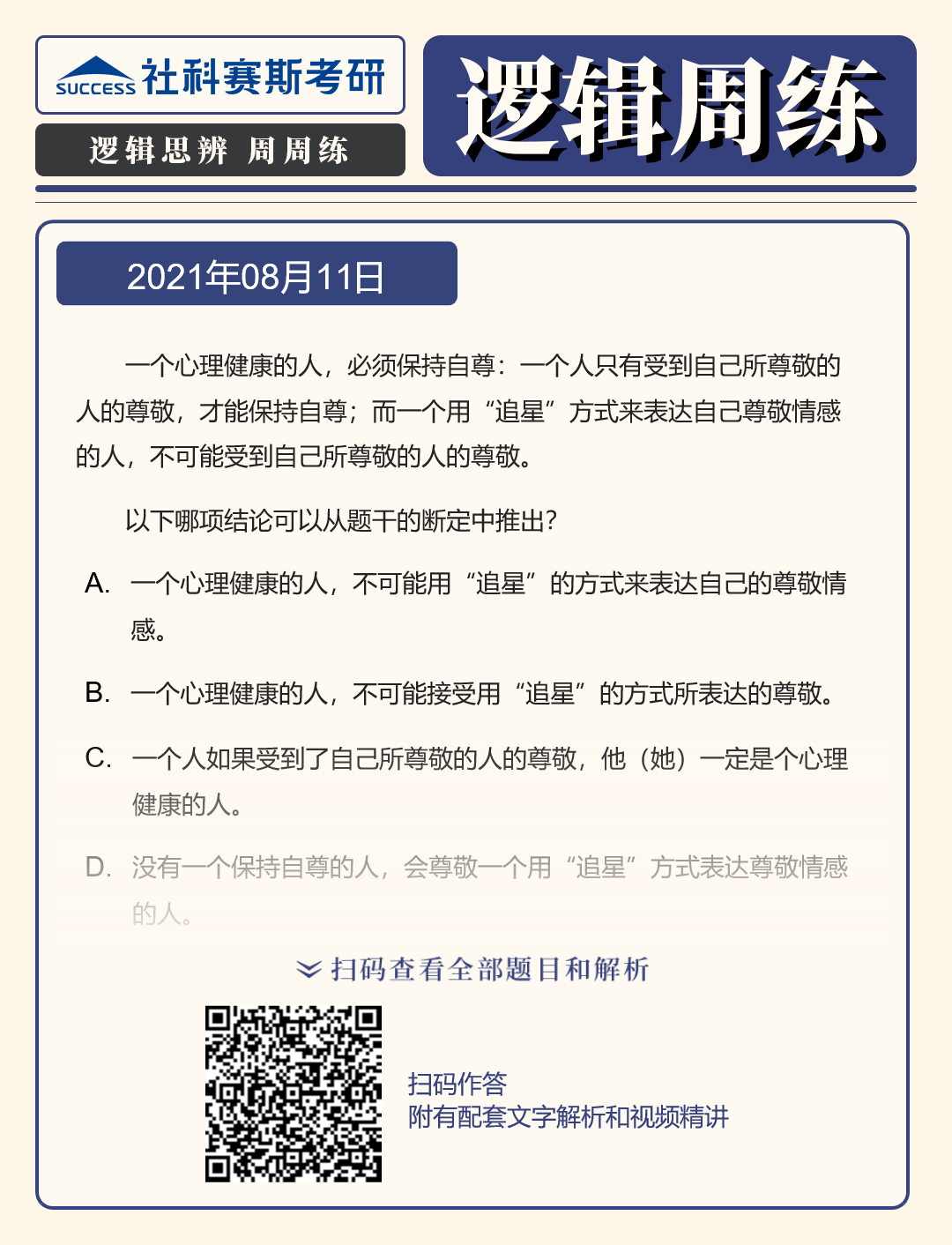 以上就是社科賽斯考研網(wǎng)小編為大家整理邏輯專項(xiàng)練習(xí):8月11日邏輯專項(xiàng)練習(xí)及答案的全部?jī)?nèi)容,希望各位考生堅(jiān)持利用起來,想要獲取更多內(nèi)容請(qǐng)持續(xù)關(guān)注社科賽斯考研網(wǎng)。