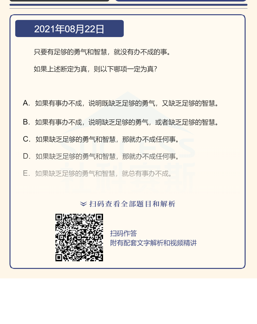 以上就是社科賽斯考研網小編為大家整理邏輯專項練習:8月22日邏輯專項練習及答案的全部內容,希望各位考生堅持利用起來,想要獲取更多內容請持續關注社科賽斯考研網。