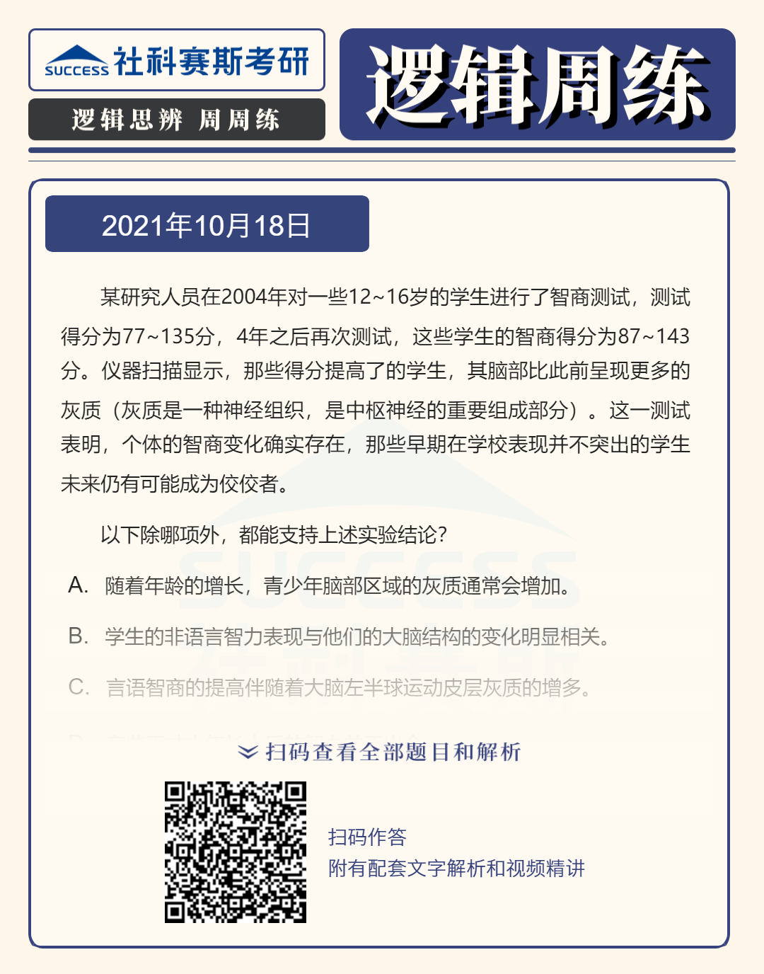 邏輯思辨周周練,考研邏輯專項練習(xí),攻克邏輯難關(guān)!今天社科賽斯考研網(wǎng)小編整理了“邏輯專項練習(xí):10月18日邏輯專項練習(xí)及答案”,希望能對廣大考生有所幫助!