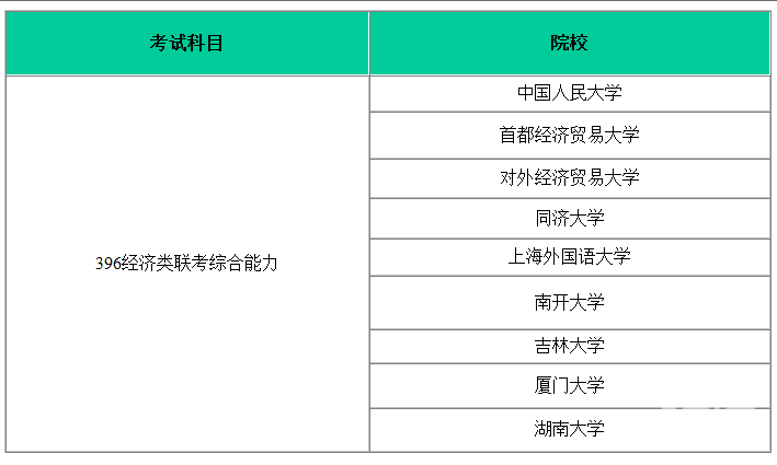 考396經濟類聯考綜合能力的院校