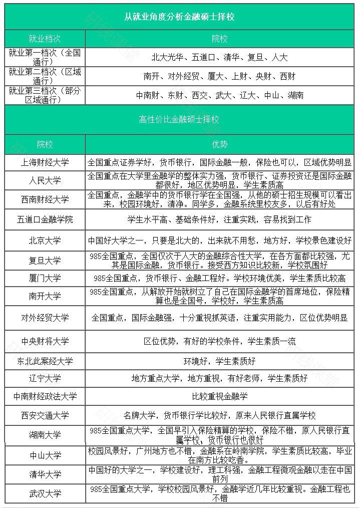 金融碩士院校,以及匯總了金融碩士的就業方向,以便小伙伴們更好的了解金融碩士,選擇更適合自身的院校。
