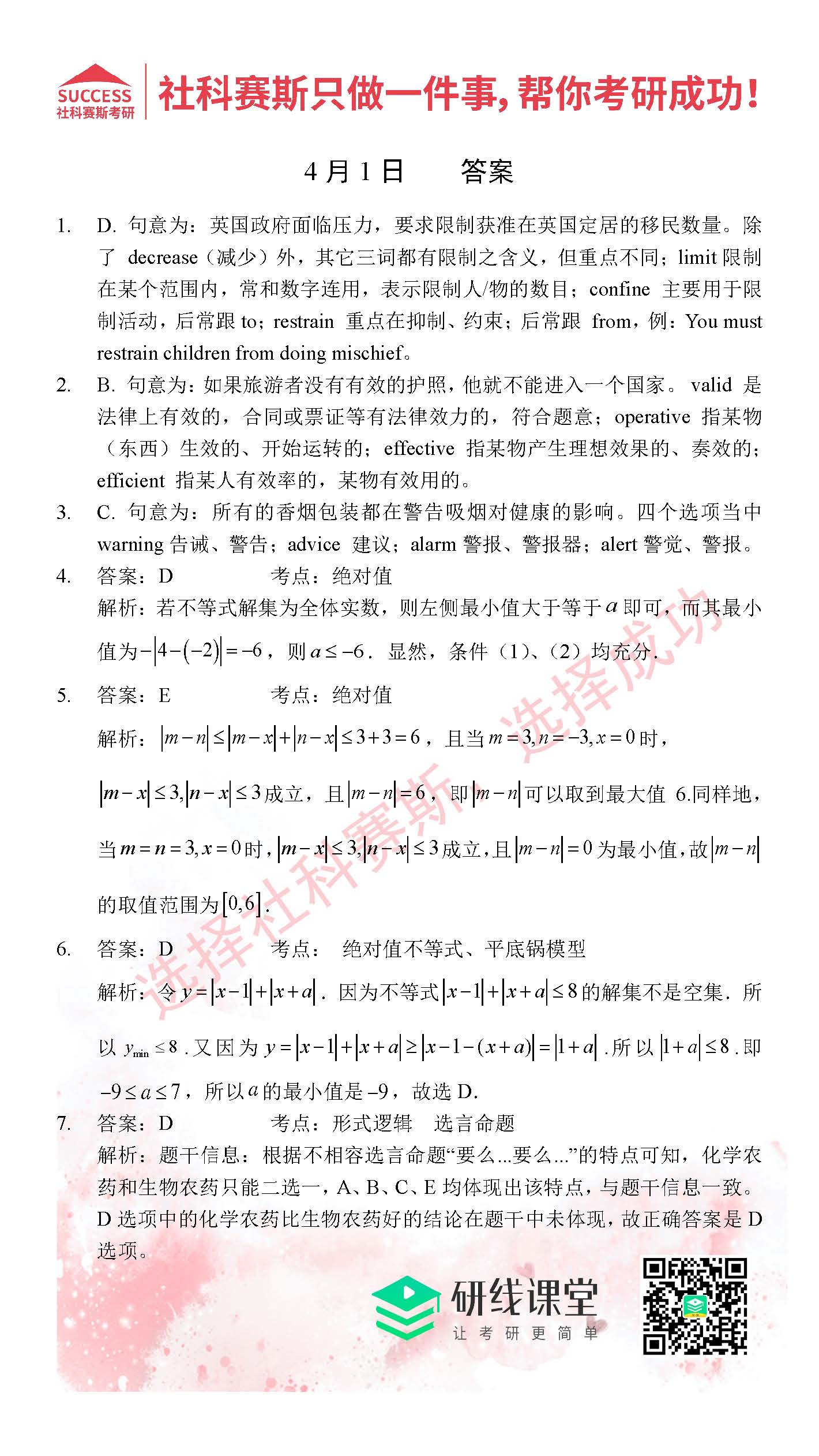 當前位置: 聯考綜合 > 模擬試題 > 2021管理類聯考4月1日每日一練及答案
