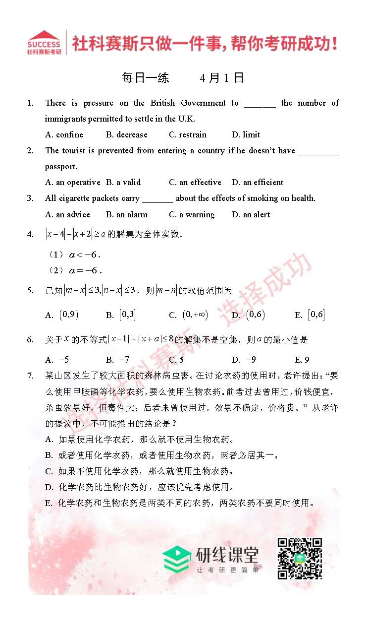 考研是一場持久戰,保持良好的學習習慣,是能確保復習高效的關鍵。MBA備考網小編整理了管綜的每日一練,希望能對廣大考生有所幫助。