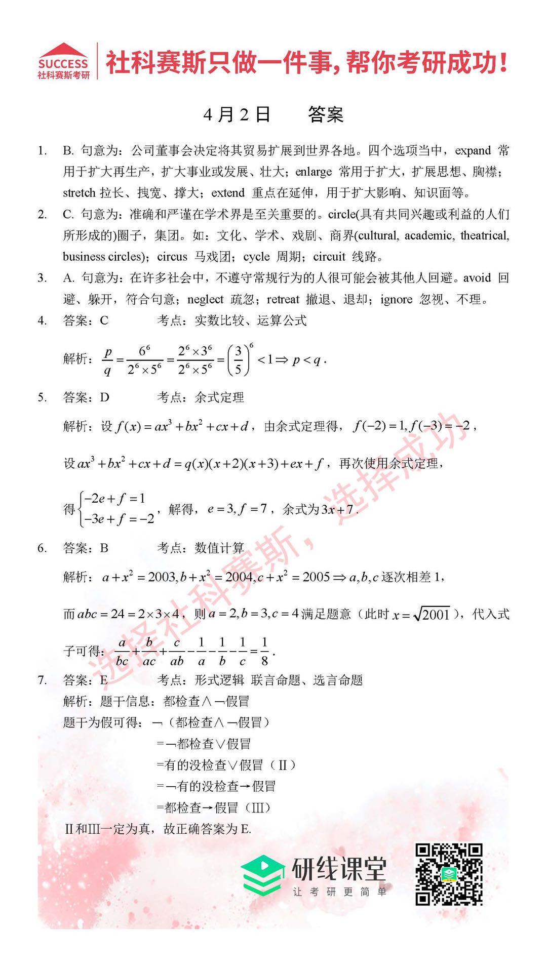 當(dāng)前位置: 聯(lián)考綜合 > 模擬試題 > 2021管理類聯(lián)考4月2日每日一練及答案