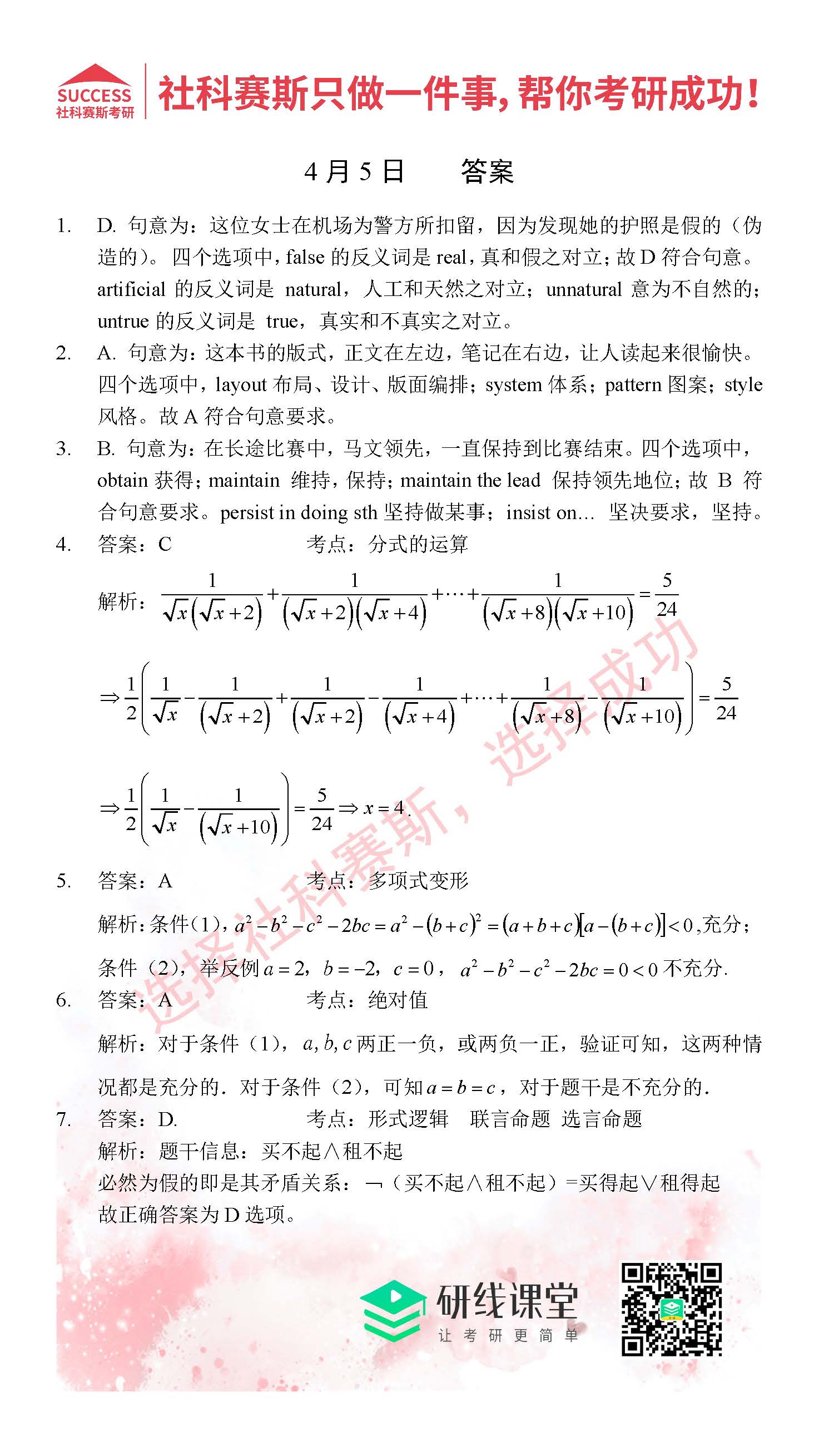 當前位置: 聯考綜合 > 模擬試題 > 2021管理類聯考4月5日每日一練及答案