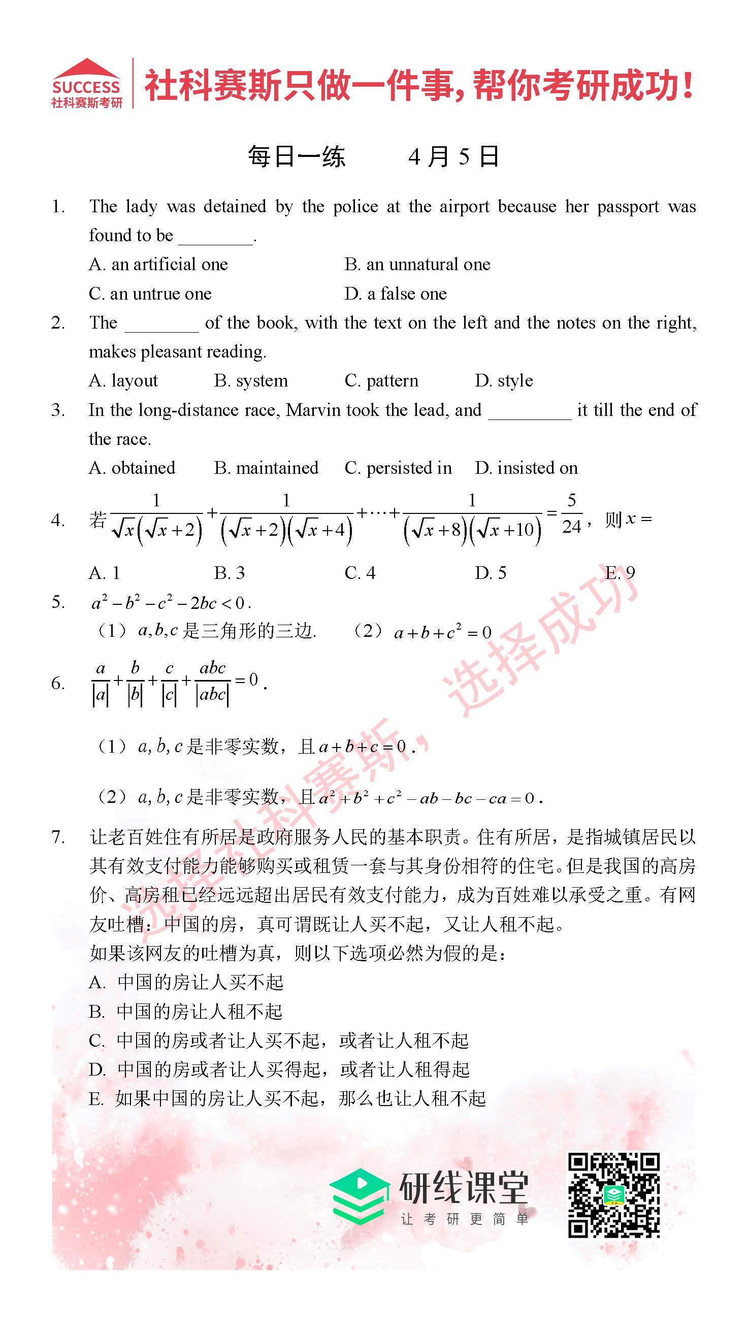 考研是一場持久戰,保持良好的學習習慣,是能確保復習高效的關鍵。MBA備考網小編整理了管綜的每日一練,希望能對廣大考生有所幫助。