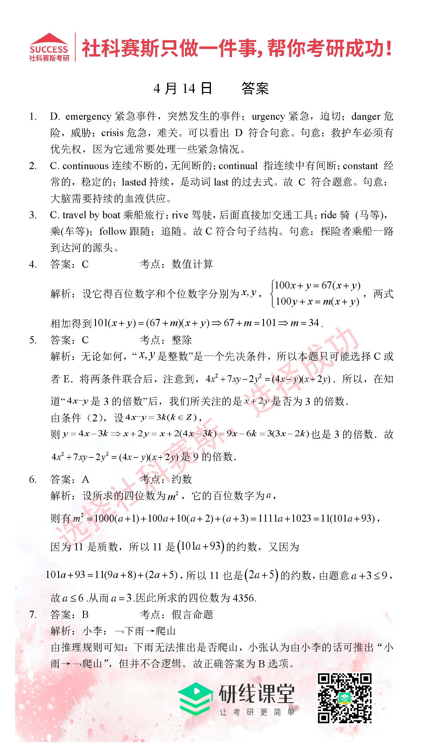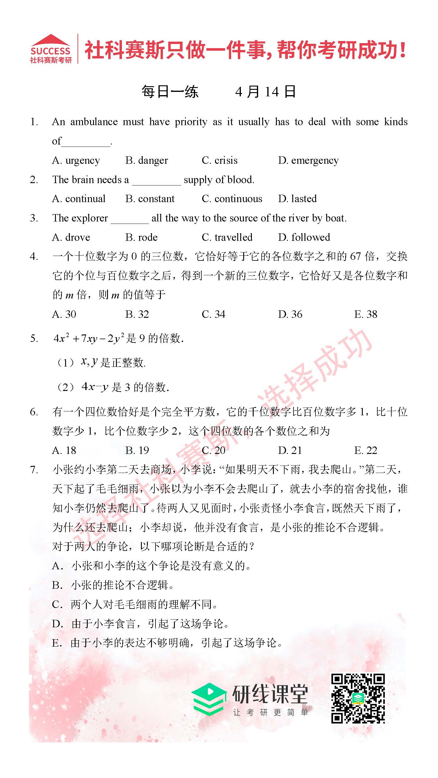 2021管理類聯考4月14日每日一練及答案