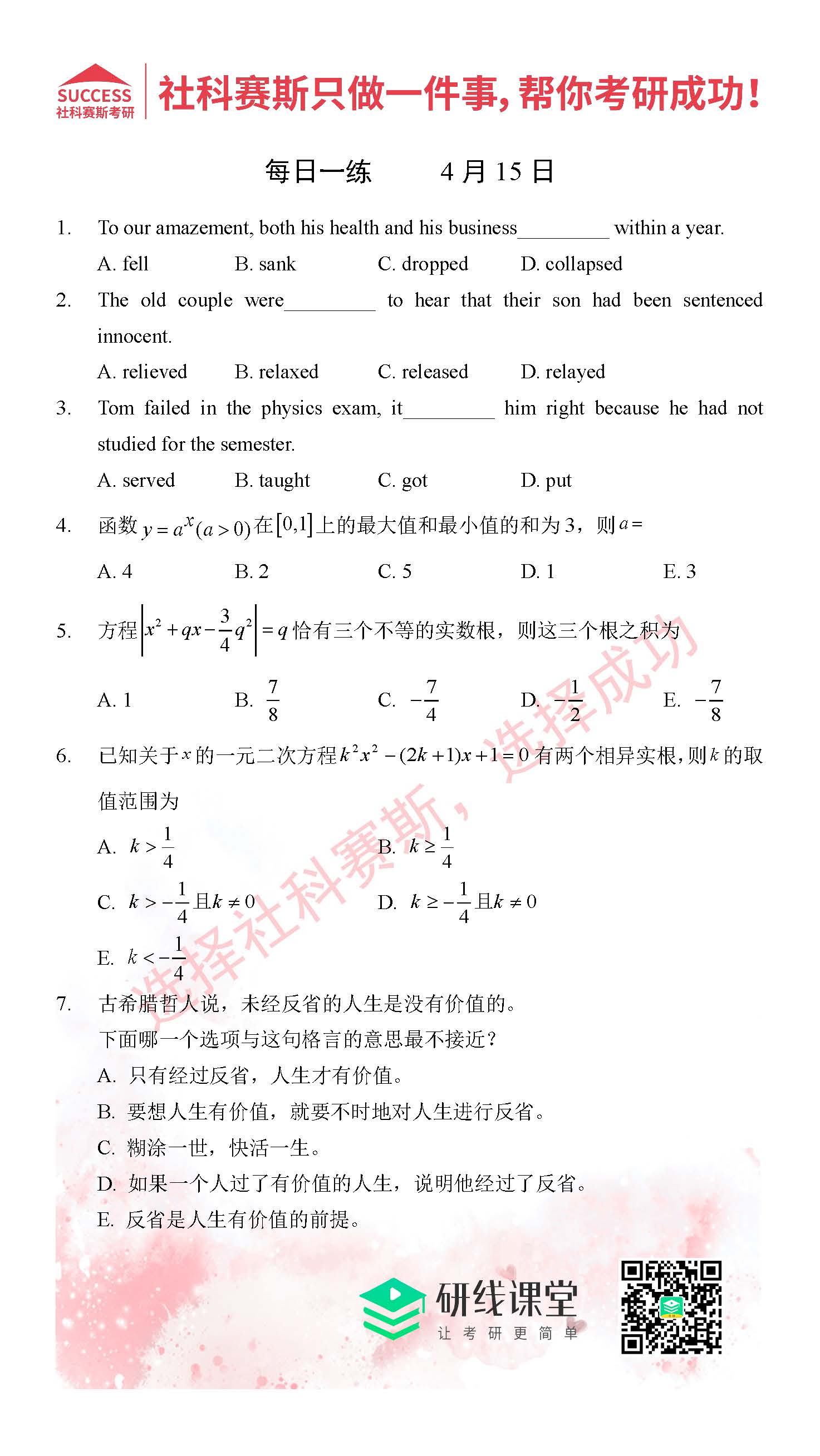 當(dāng)前位置: 聯(lián)考綜合 > 模擬試題 > 2021管理類聯(lián)考4月15日每日一練及答案