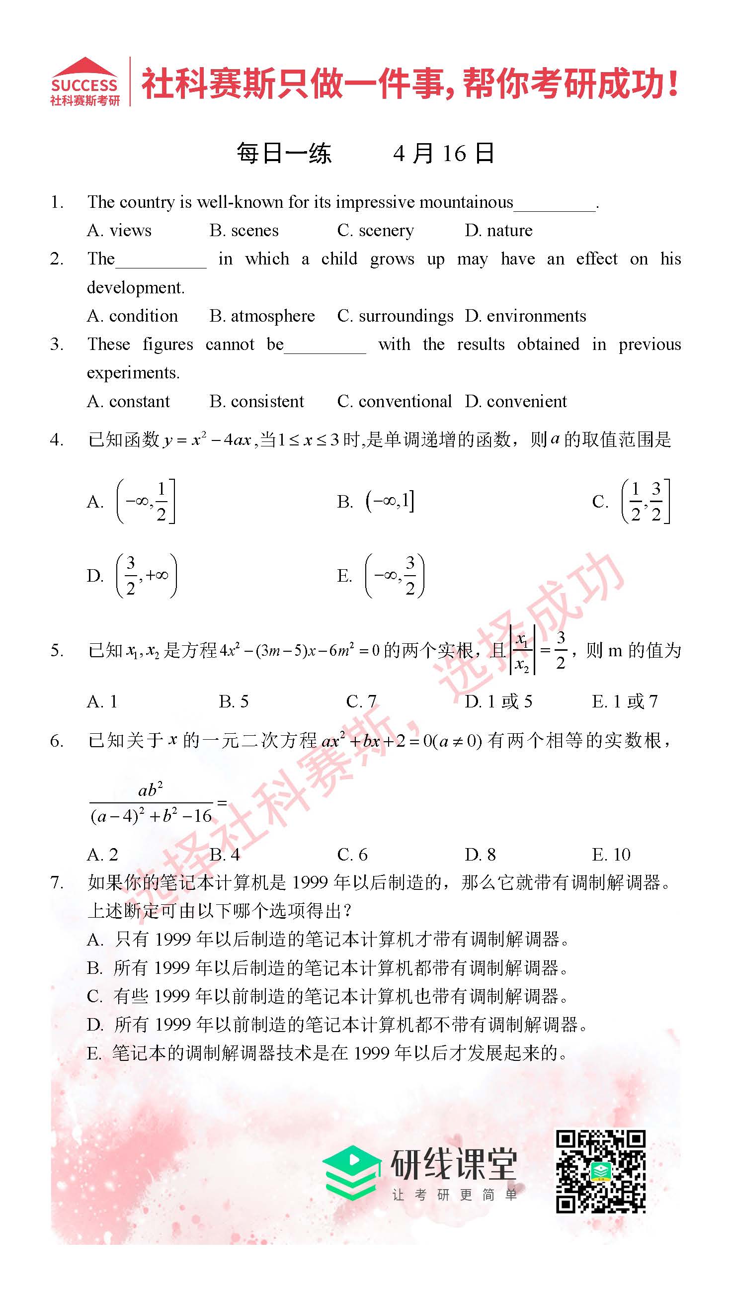 2021管理類聯(lián)考4月16日每日一練及答案