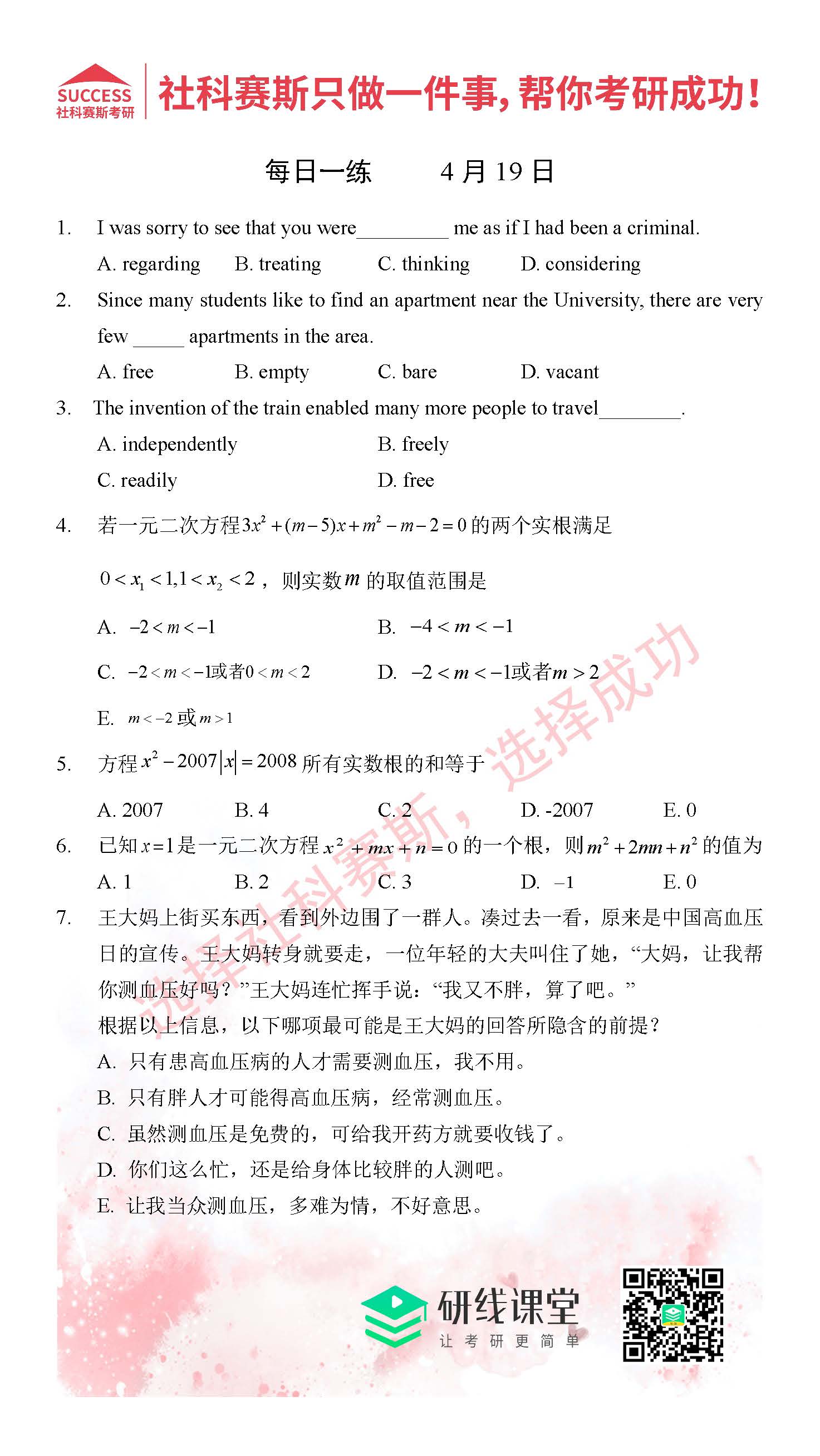考研是一場持久戰,保持良好的學習習慣,是能確保復習高效的關鍵。MBA備考網小編整理了管綜的每日一練,希望能對廣大考生有所幫助。
