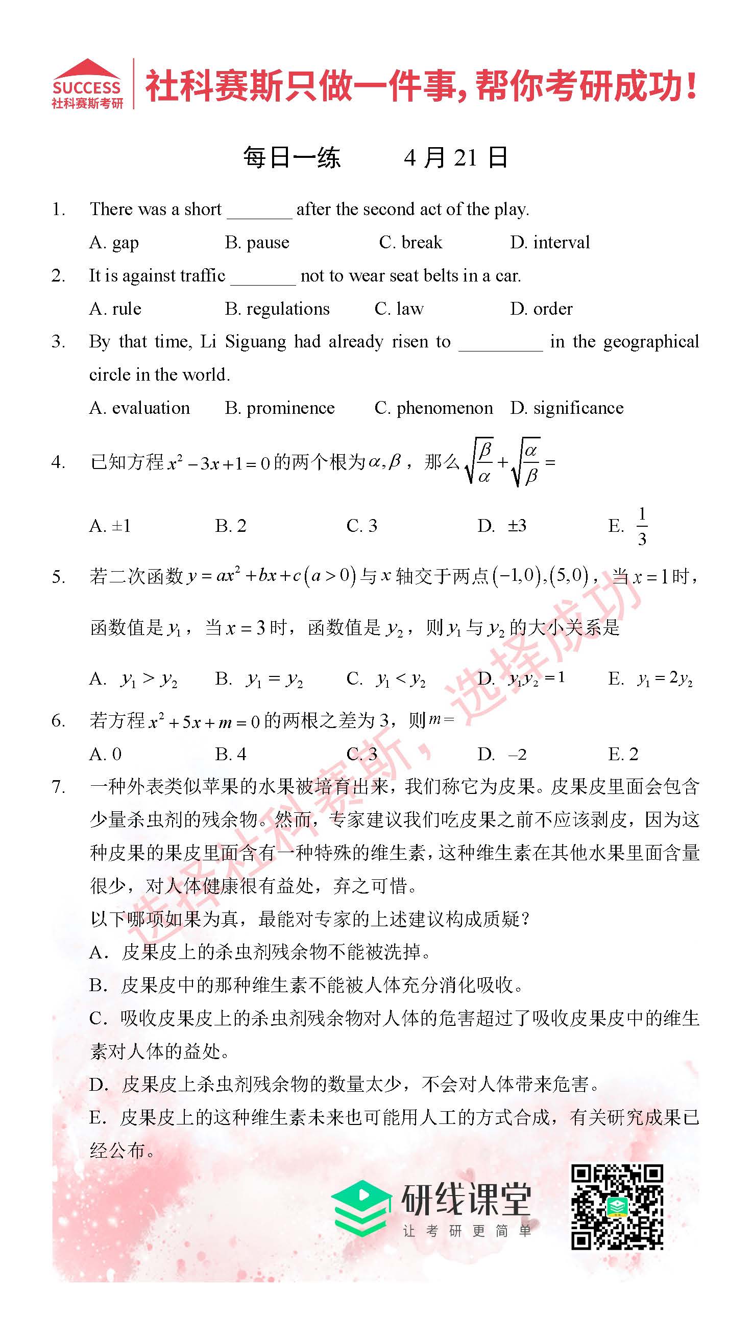 當前位置: 聯考綜合 > 模擬試題 > 2021管理類聯考4月21日每日一練及答案