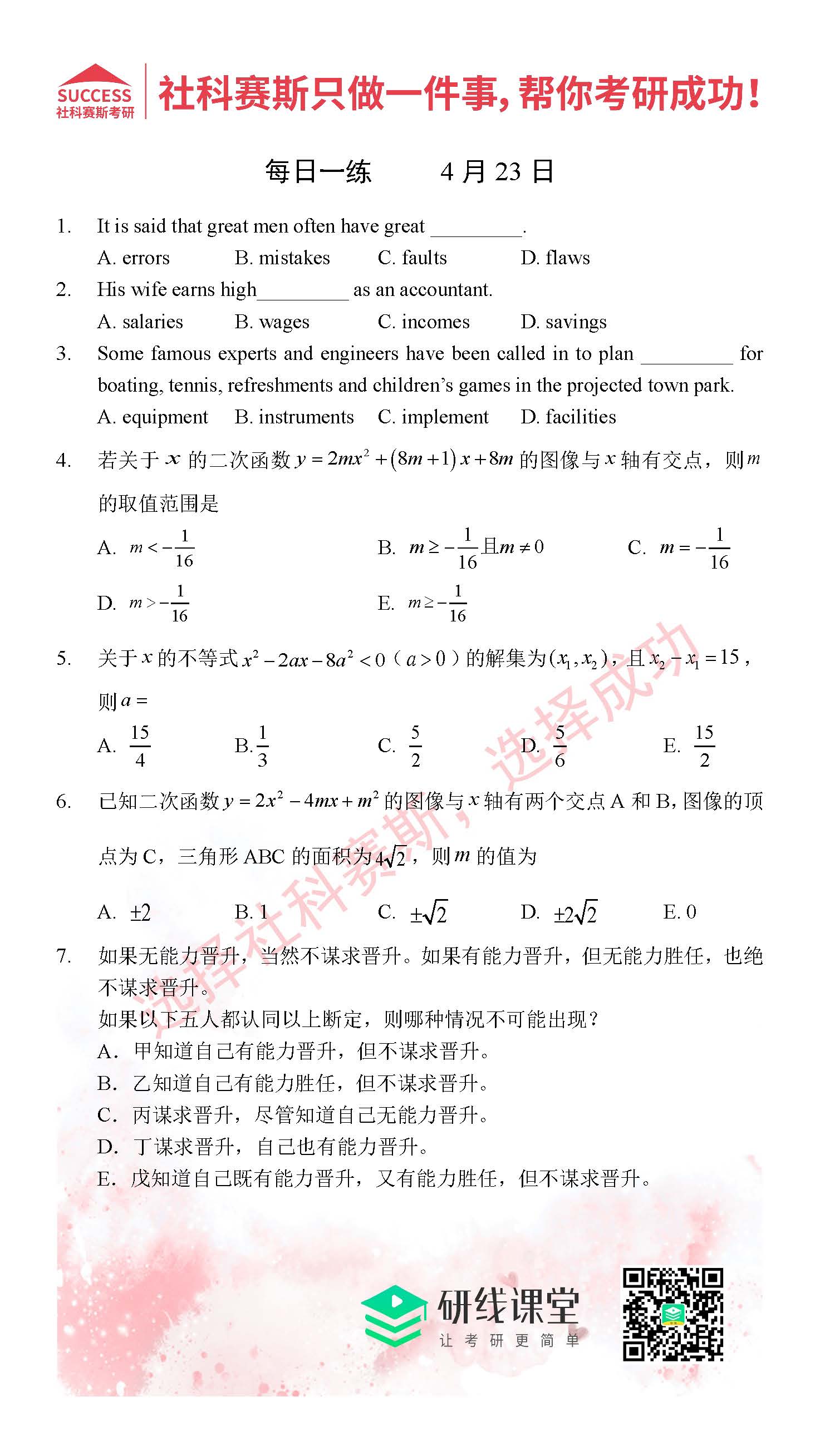 考研是一場持久戰,保持良好的學習習慣,是能確保復習高效的關鍵。MBA備考網小編整理了管綜的每日一練,希望能對廣大考生有所幫助。