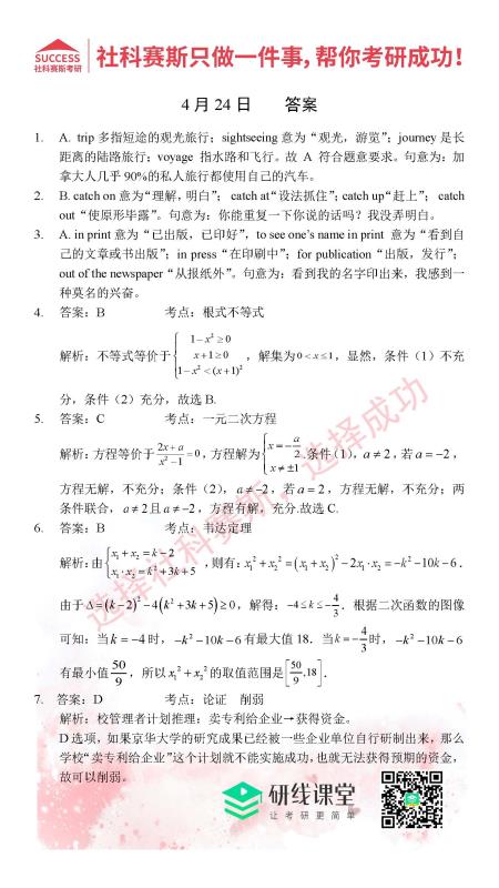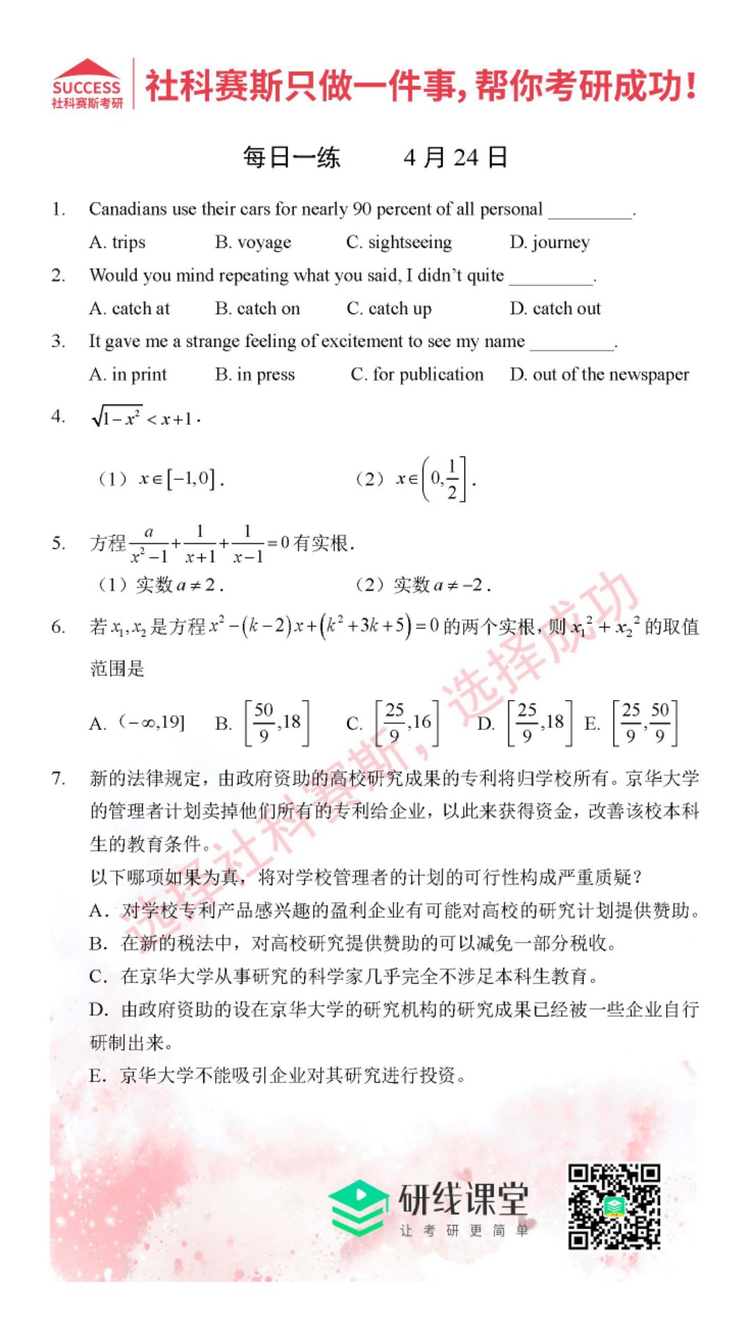 當(dāng)前位置: 聯(lián)考綜合 > 模擬試題 > 2021管理類聯(lián)考4月24日每日一練及答案
