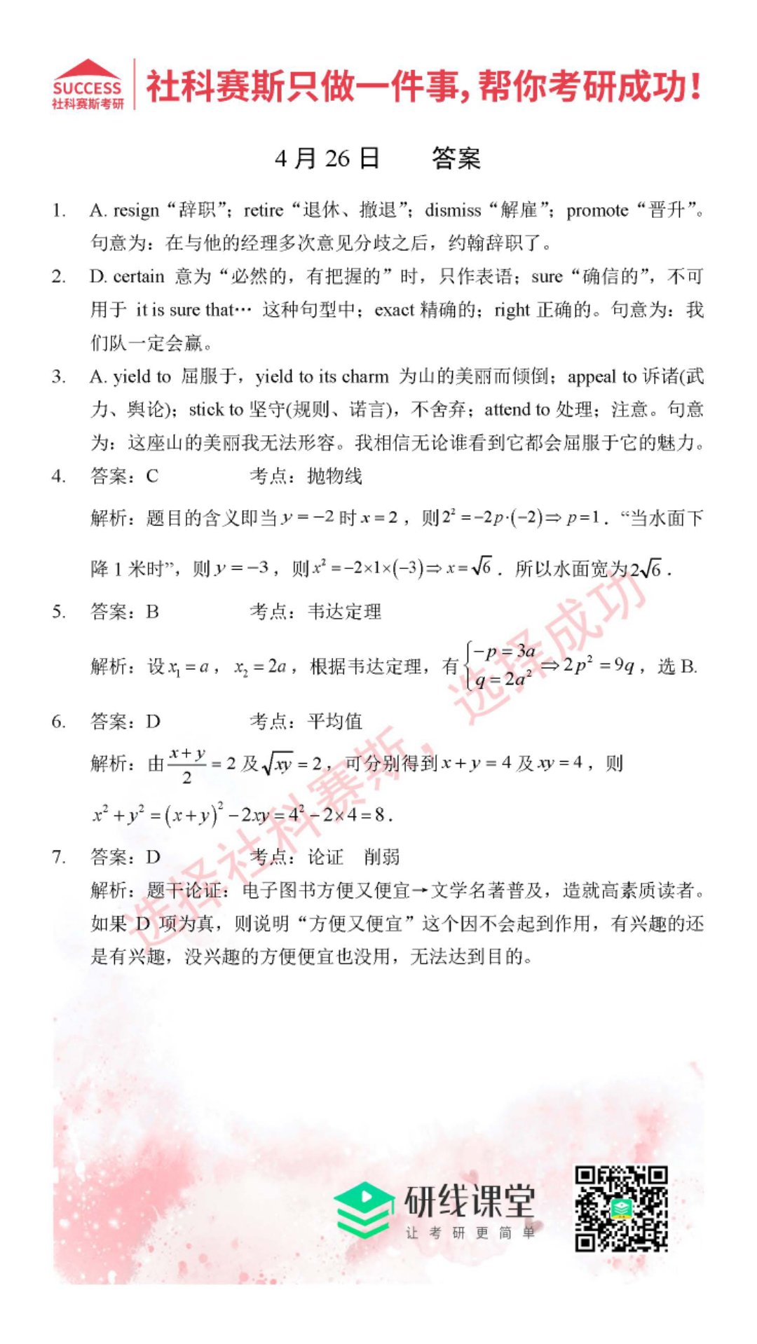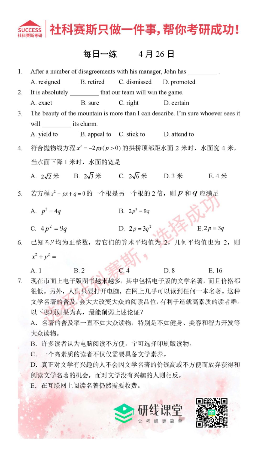 當(dāng)前位置: 聯(lián)考綜合 > 模擬試題 > 2021管理類聯(lián)考4月26日每日一練及答案