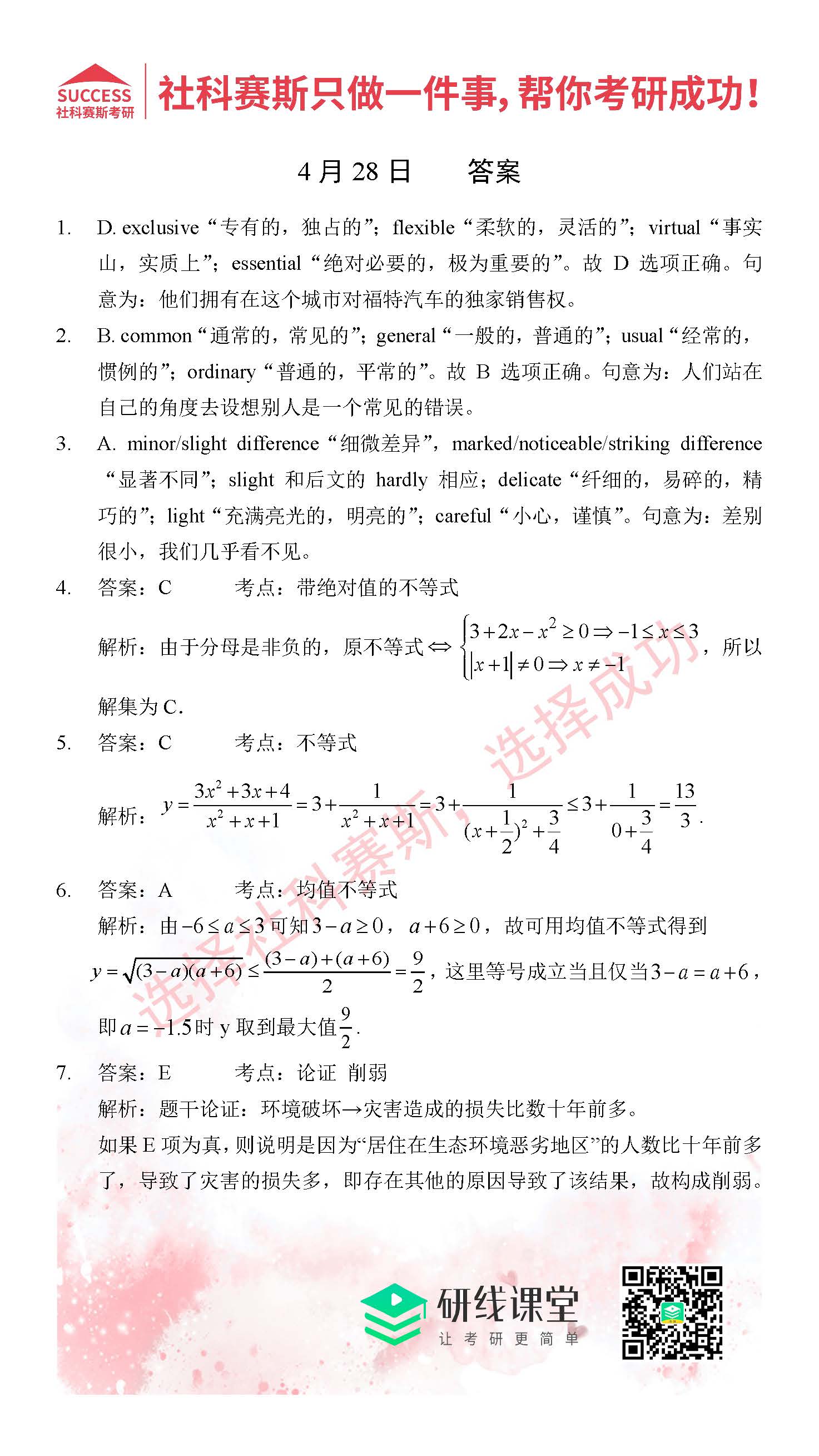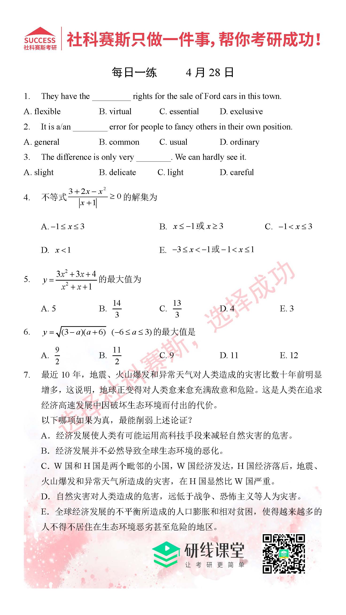 當前位置: 聯考綜合 > 模擬試題 > 2021管理類聯考4月28日每日一練及答案
