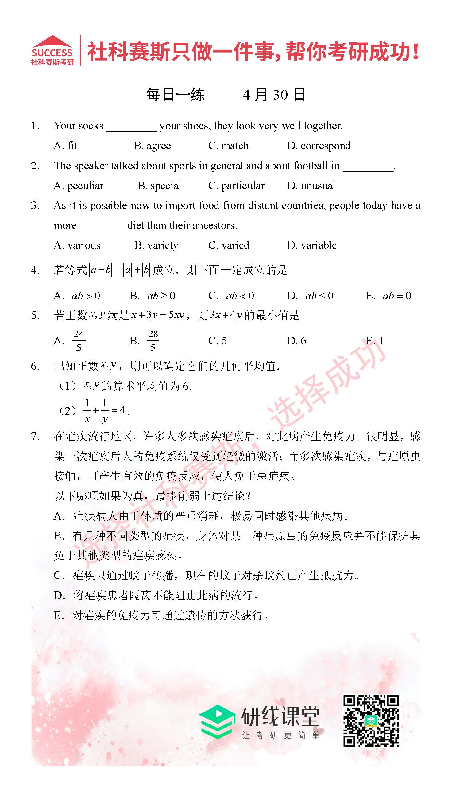 考研是一場持久戰,保持良好的學習習慣,是能確保復習高效的關鍵。MBA備考網小編整理了管綜的每日一練,希望能對廣大考生有所幫助。
