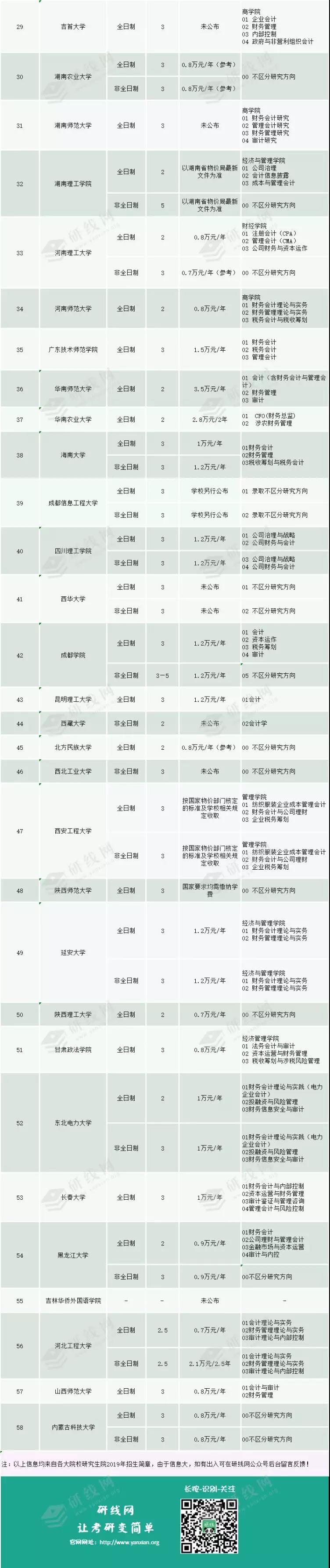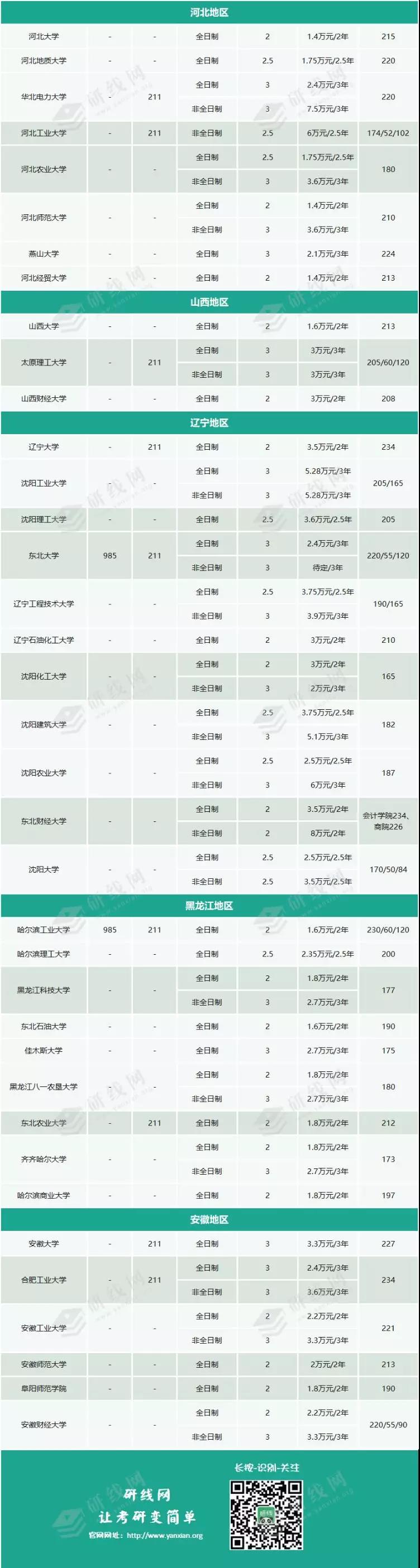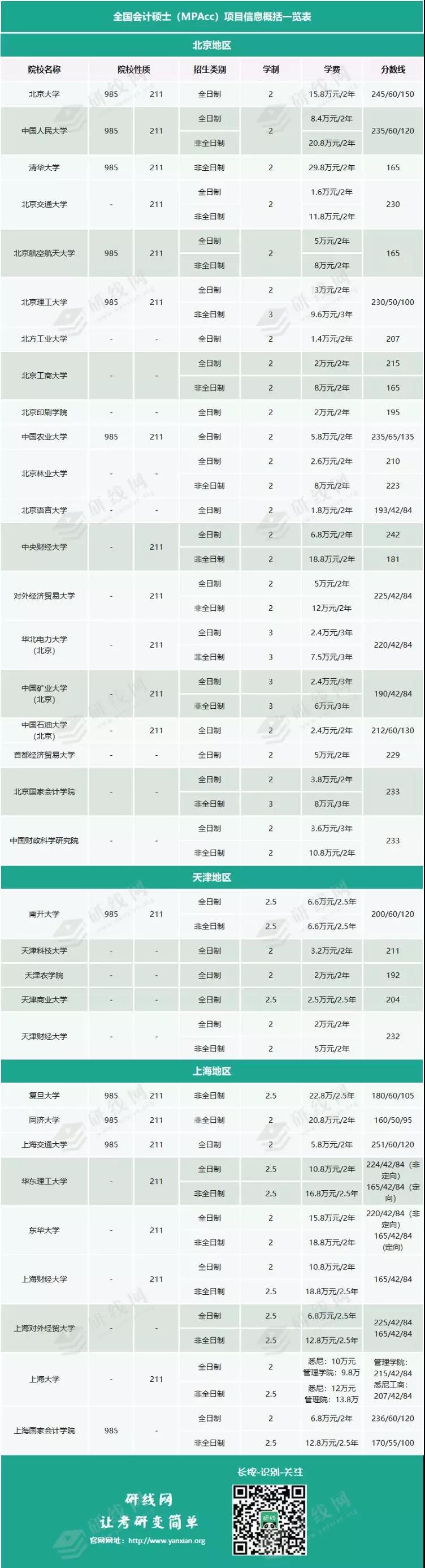 為同學整理的是全國193所會計專碩及2018年教育部新增的58所院校學費及分數線信息。