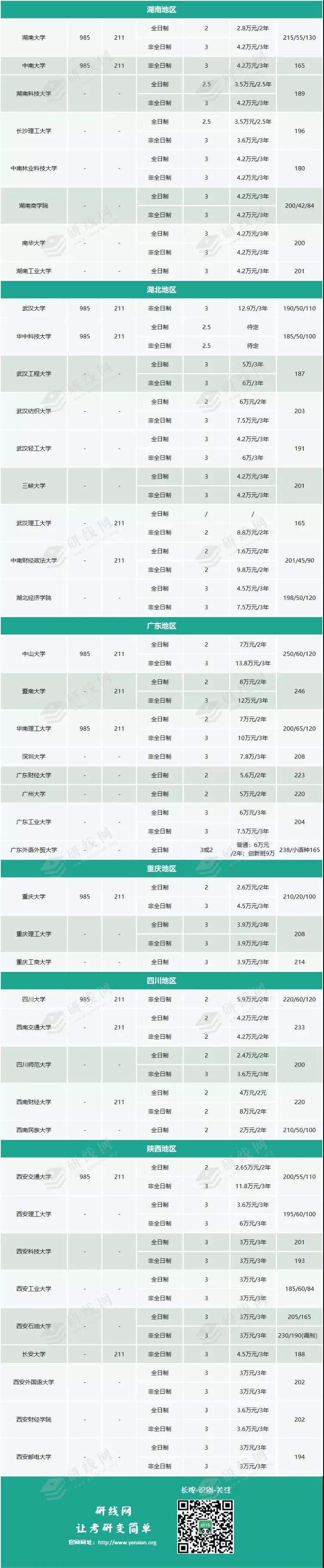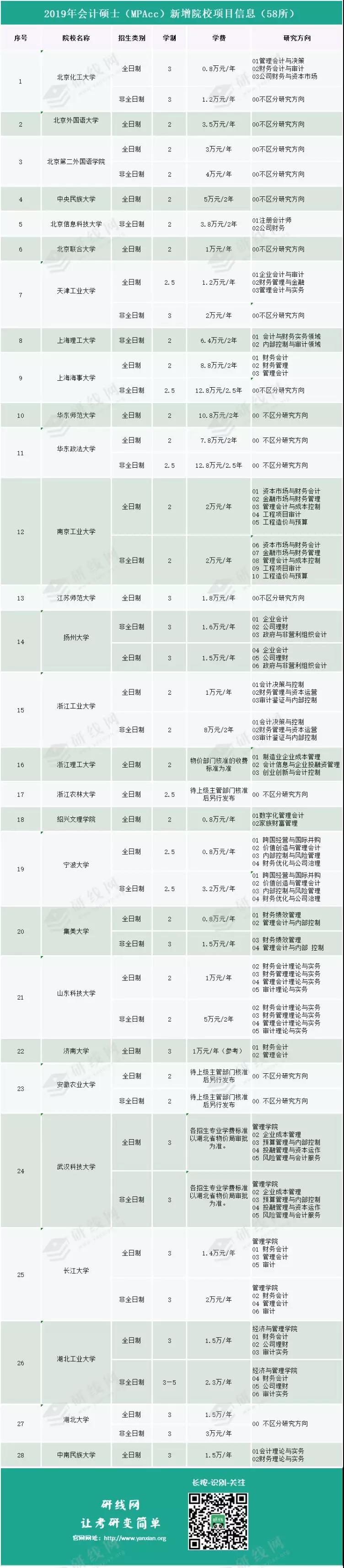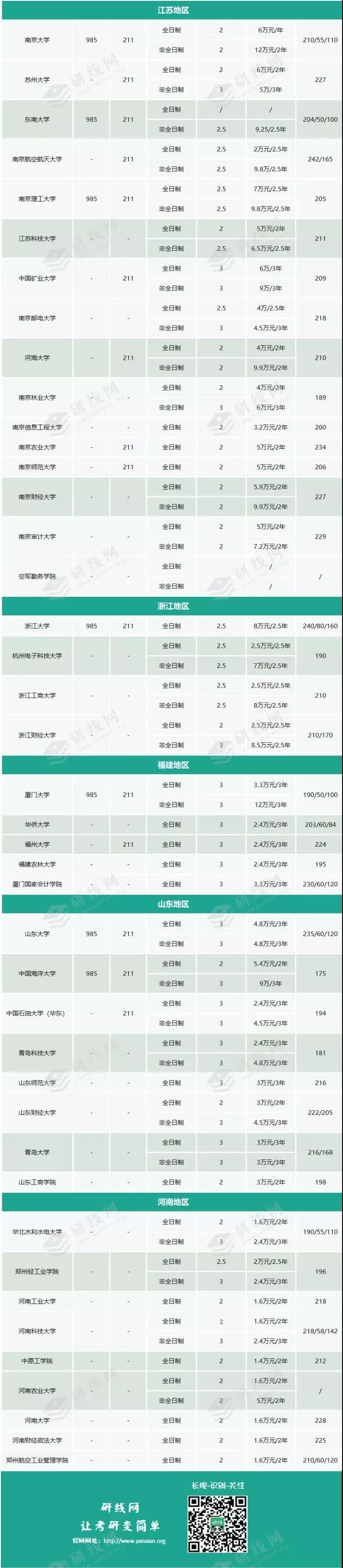 為同學整理的是全國193所會計專碩及2018年教育部新增的58所院校學費及分數線信息。