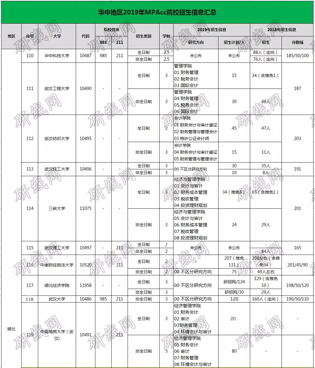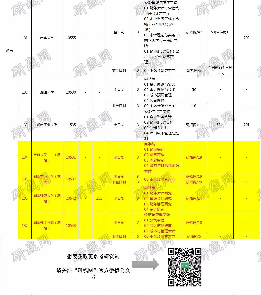 2019會計專碩(MPAcc)華中地區院校的招生信息