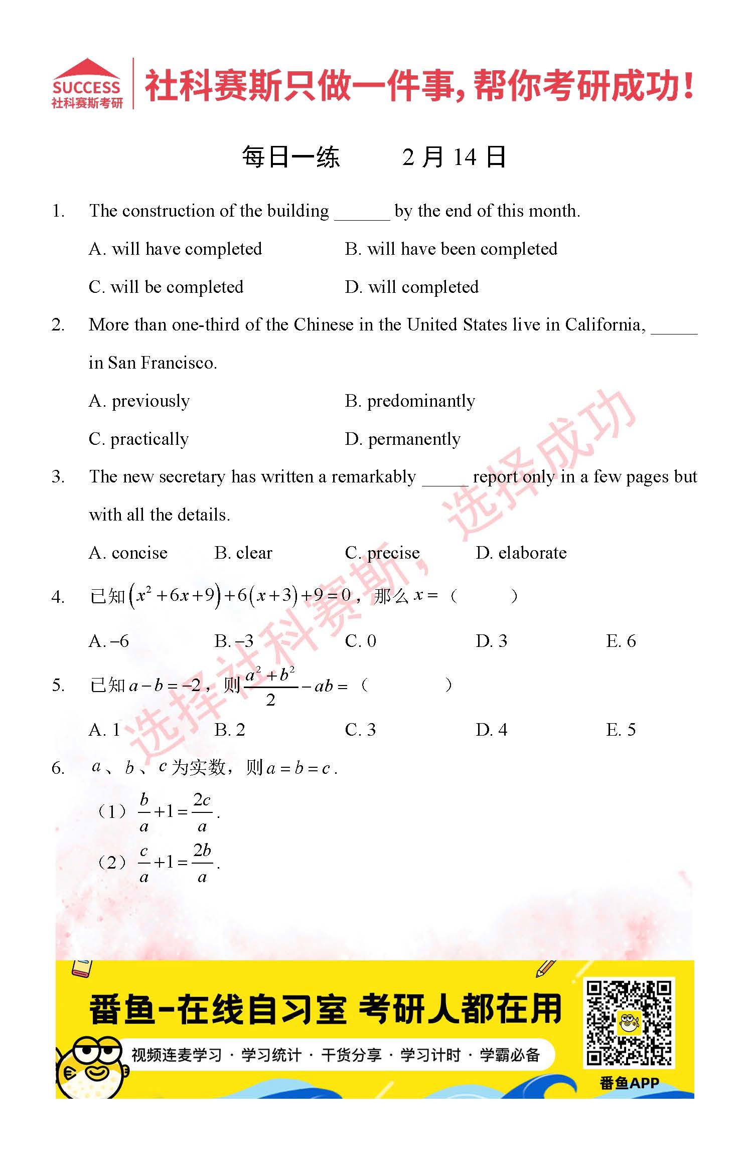 以上就是社科賽斯考研網小編為大家整理2022考研每日一練:2月14日每日一練及答案的全部內容,希望各位考生堅持利用起來,更多每日一練內容請持續關注社科賽斯考研網