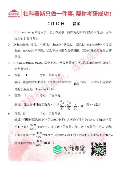 2022考研每日一練:2月17日每日一練及答案