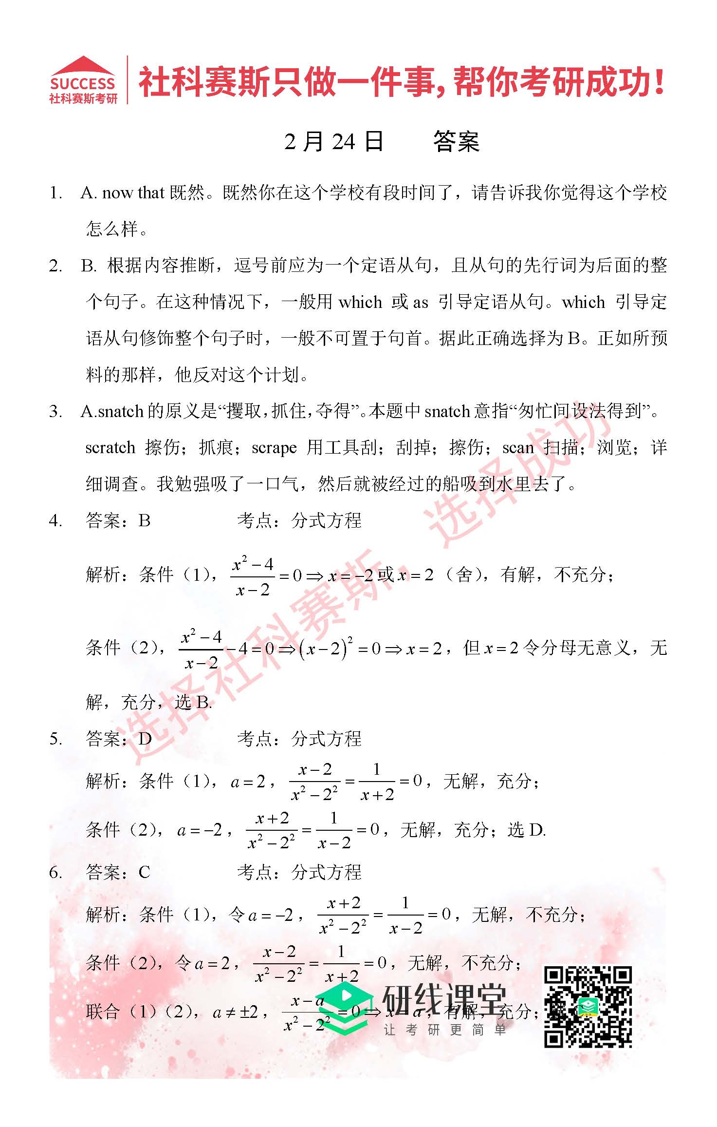 以上就是社科賽斯考研網小編為大家整理2022考研每日一練:2月24日每日一練及答案的全部內容,希望各位考生堅持利用起來,更多每日一練內容請持續關注社科賽斯考研網