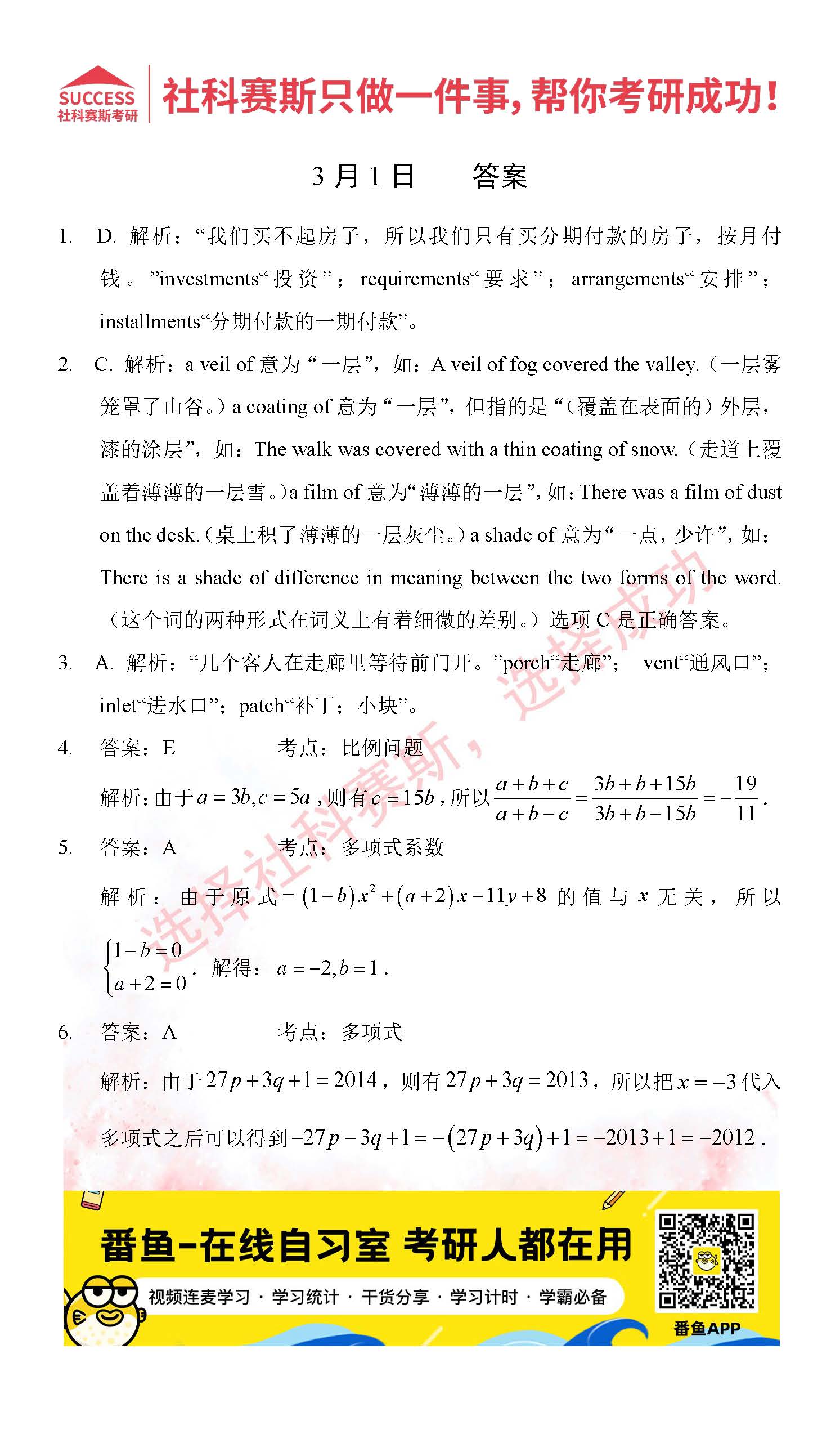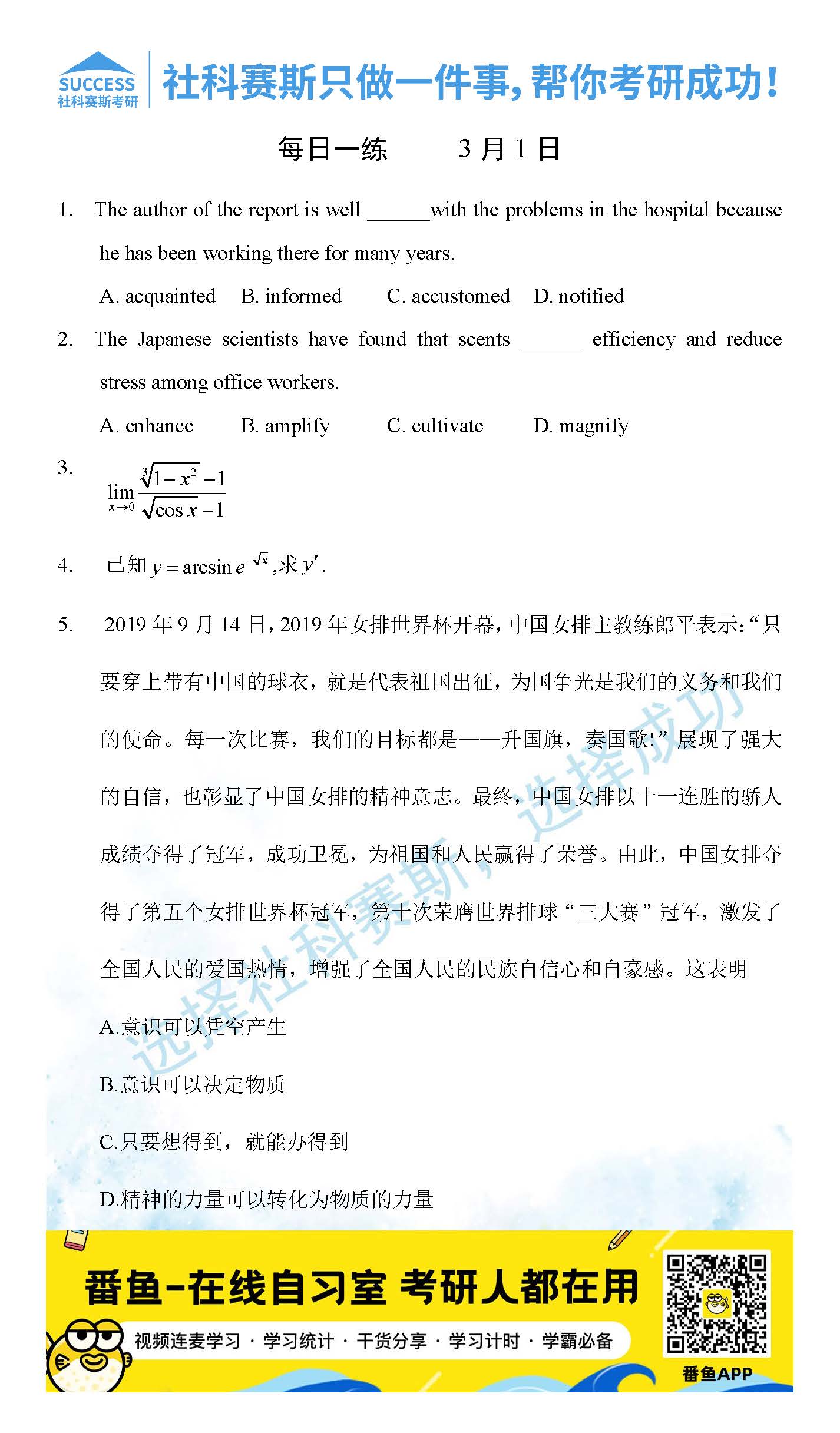 以上就是社科賽斯考研網小編為大家整理2022考研每日一練:3月1日每日一練及答案的全部內容,希望各位考生堅持利用起來,更多每日一練內容請持續關注社科賽斯考研網