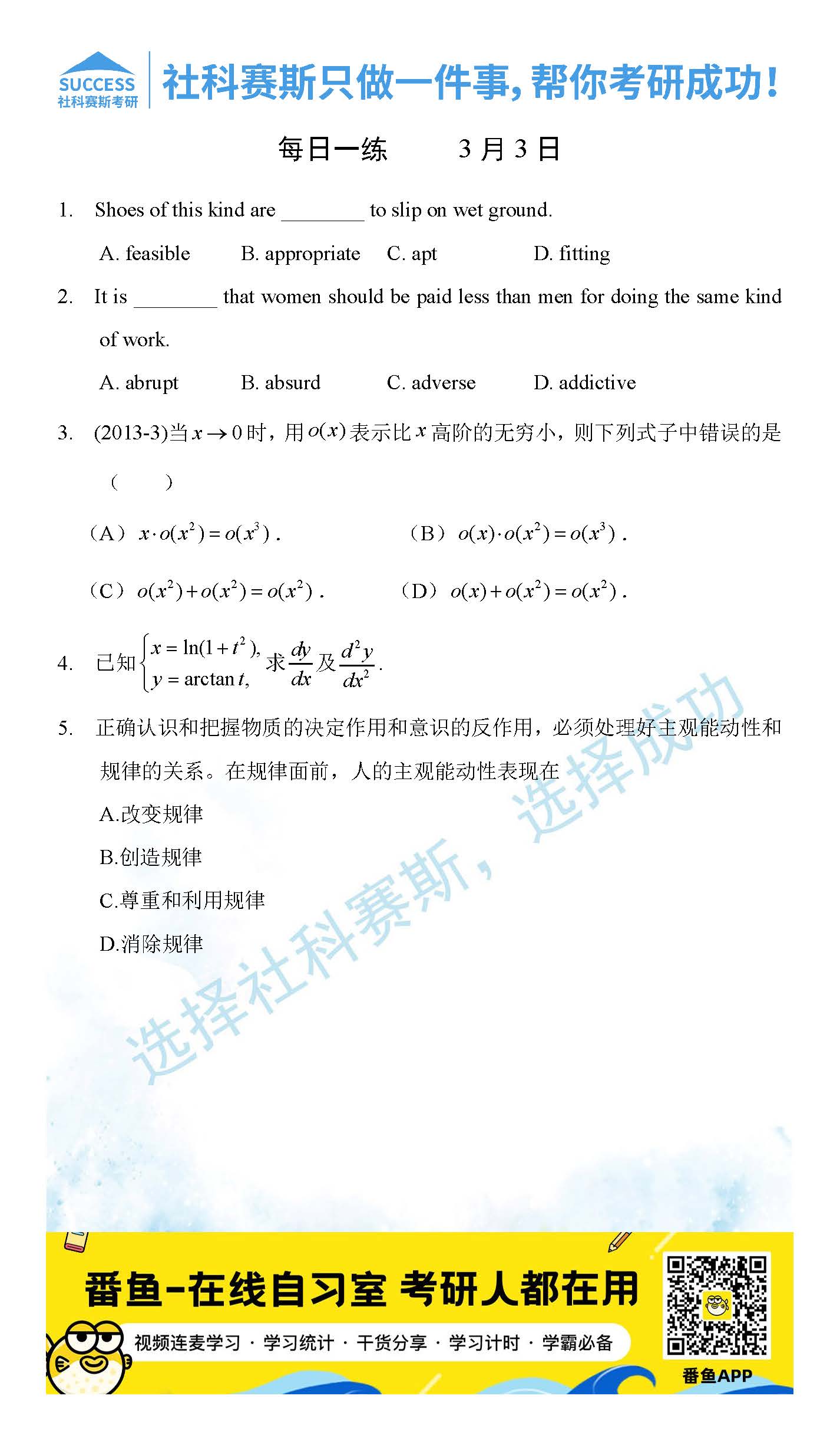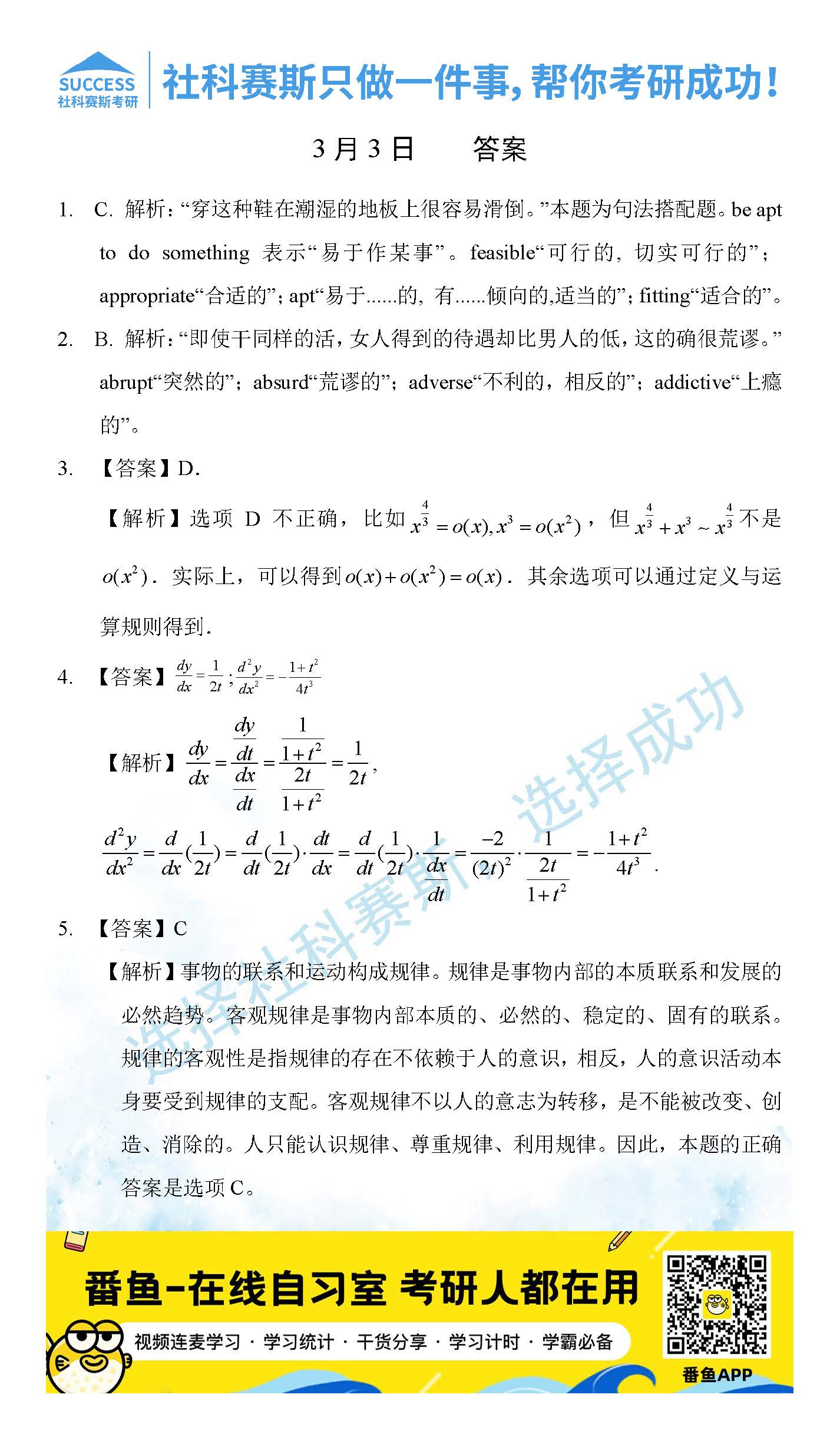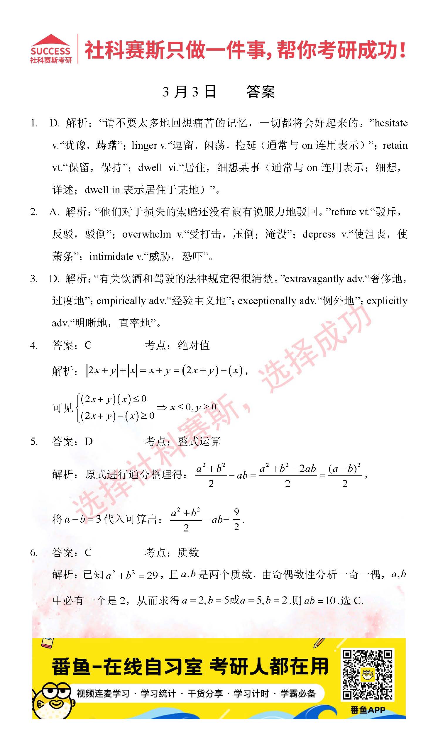 以上就是社科賽斯考研網小編為大家整理2022考研每日一練:3月3日管理類聯考每日一練及答案的全部內容,希望各位考生堅持利用起來,更多每日一練內容請持續關注社科賽斯考研網