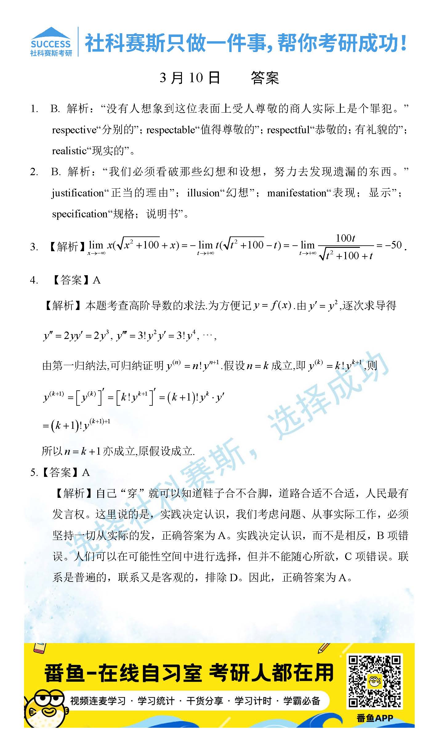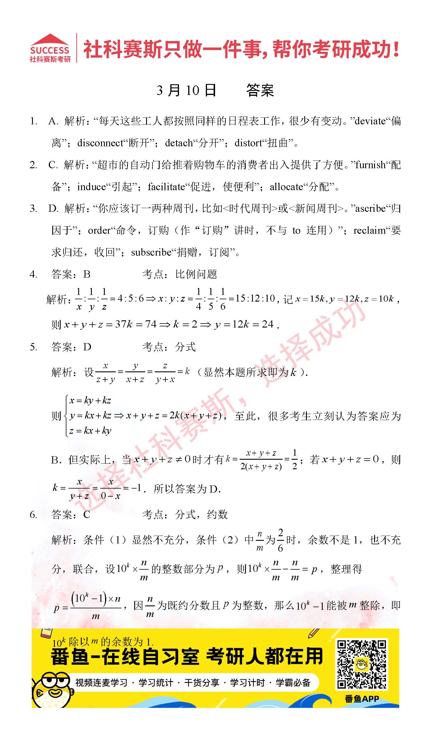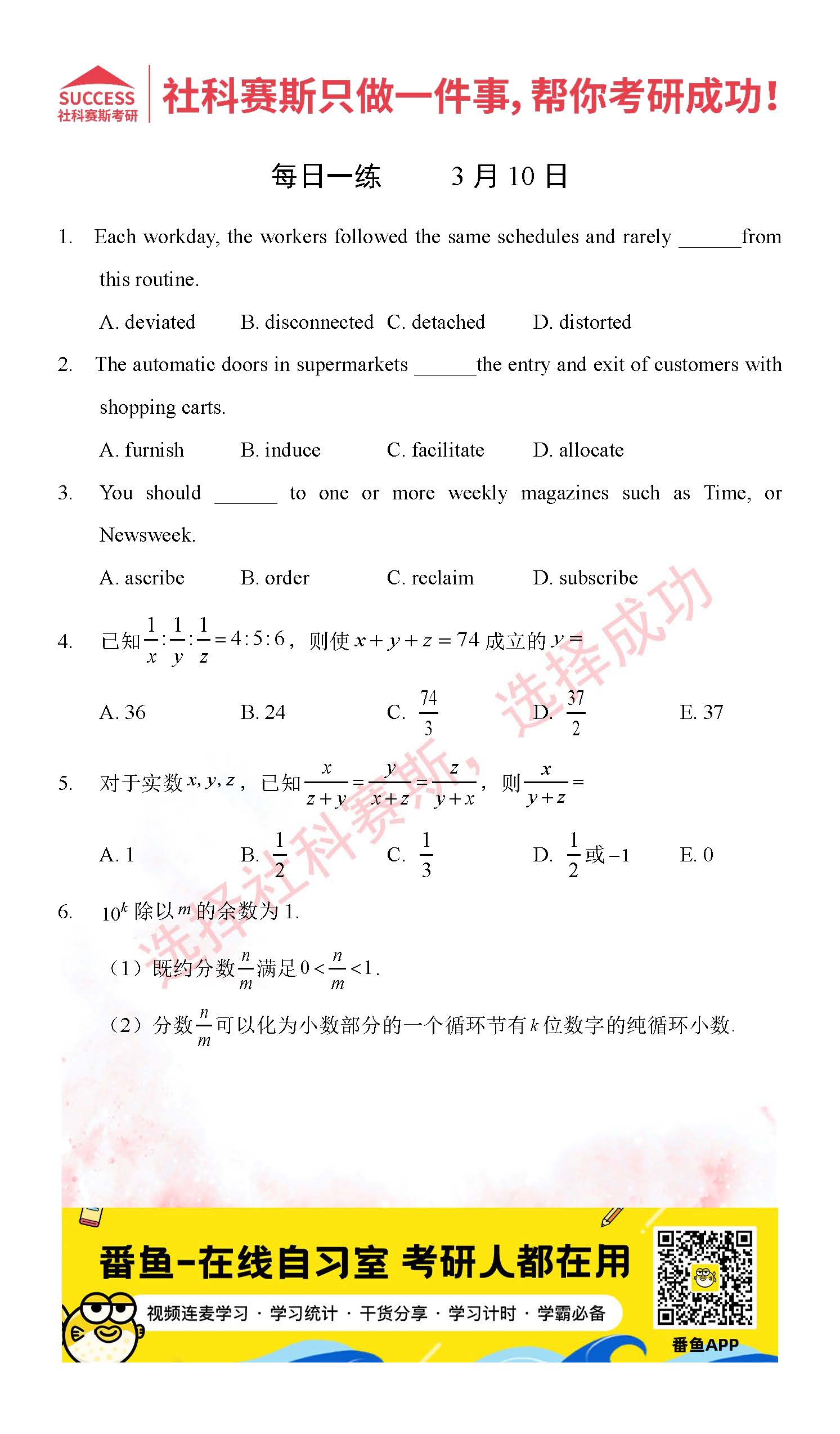 以上就是社科賽斯考研網小編為大家整理2022考研每日一練:3月10日管理類聯考每日一練及答案的全部內容,希望各位考生堅持利用起來,更多每日一練內容請持續關注社科賽斯考研網