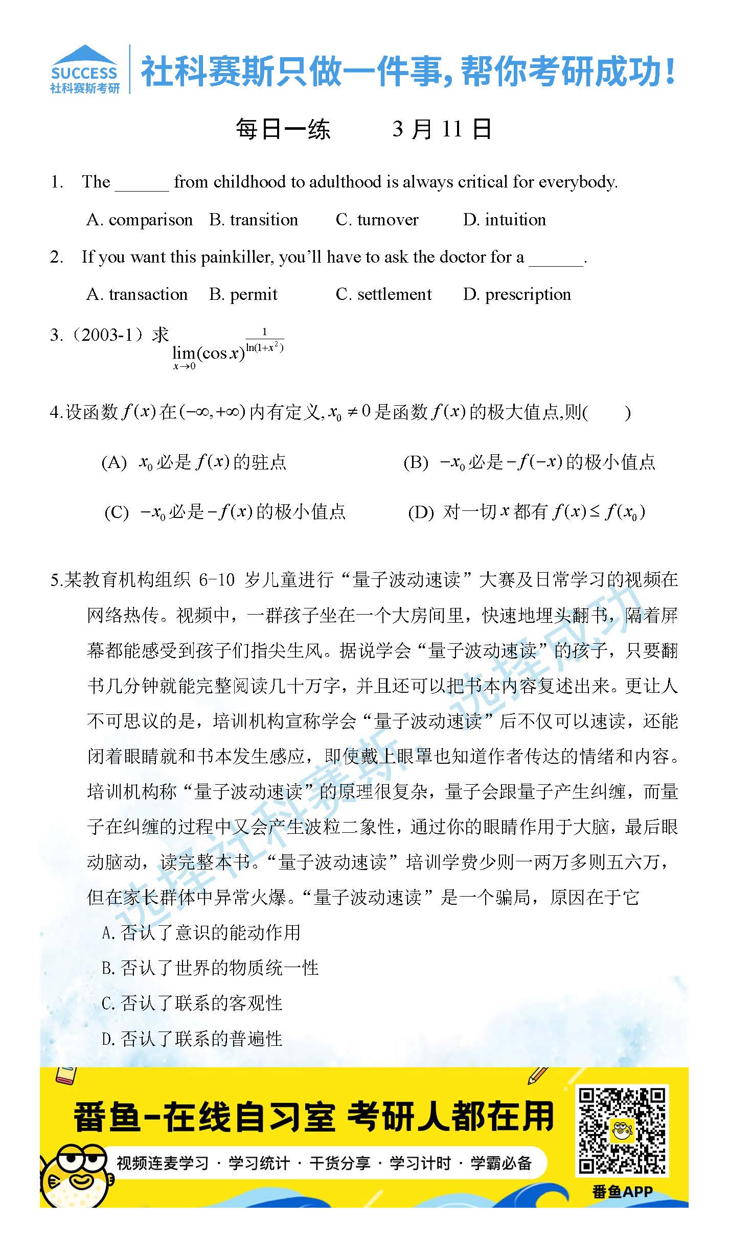 2022考研每日一練:3月11日管理類聯考每日一練及答案