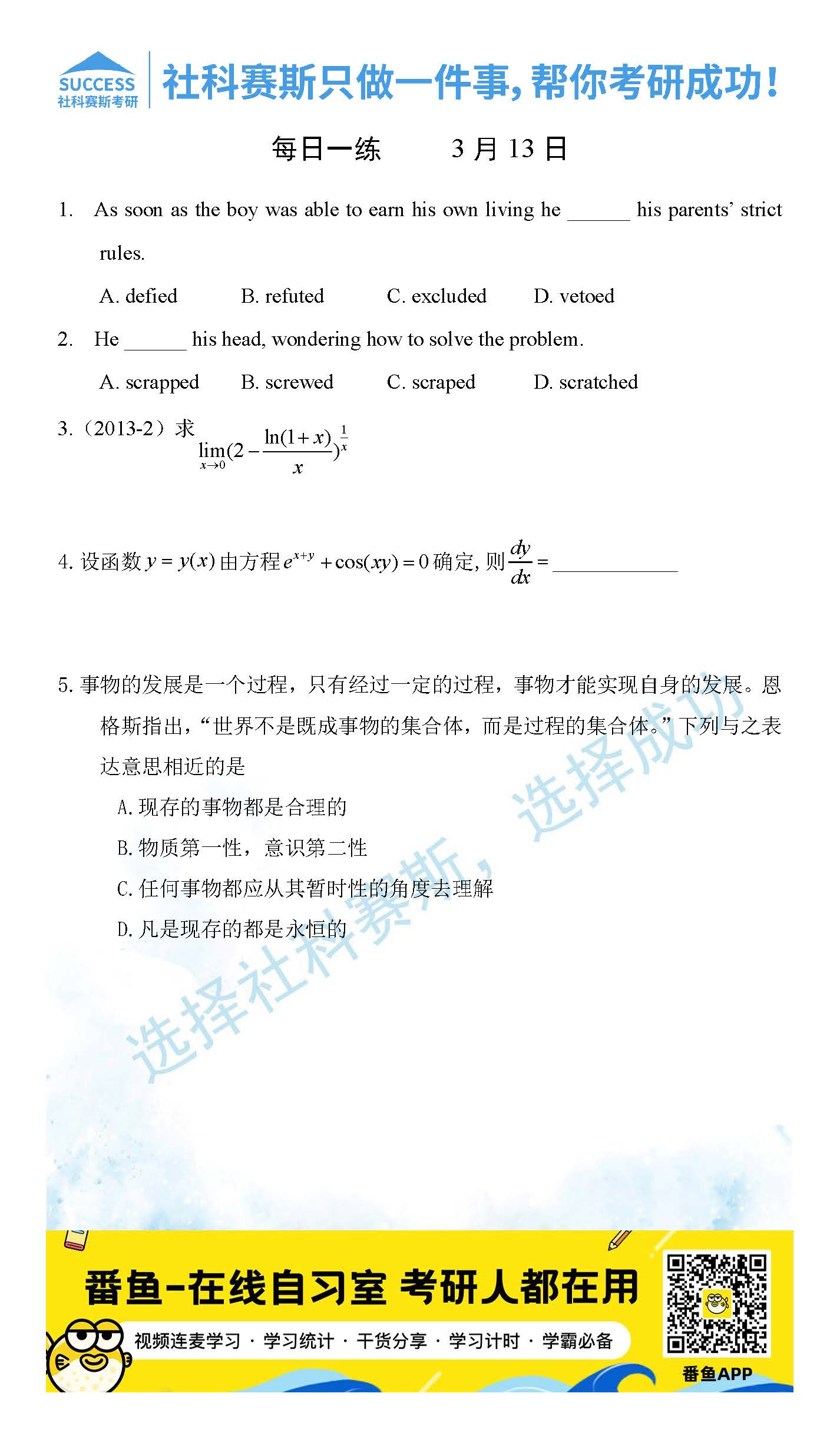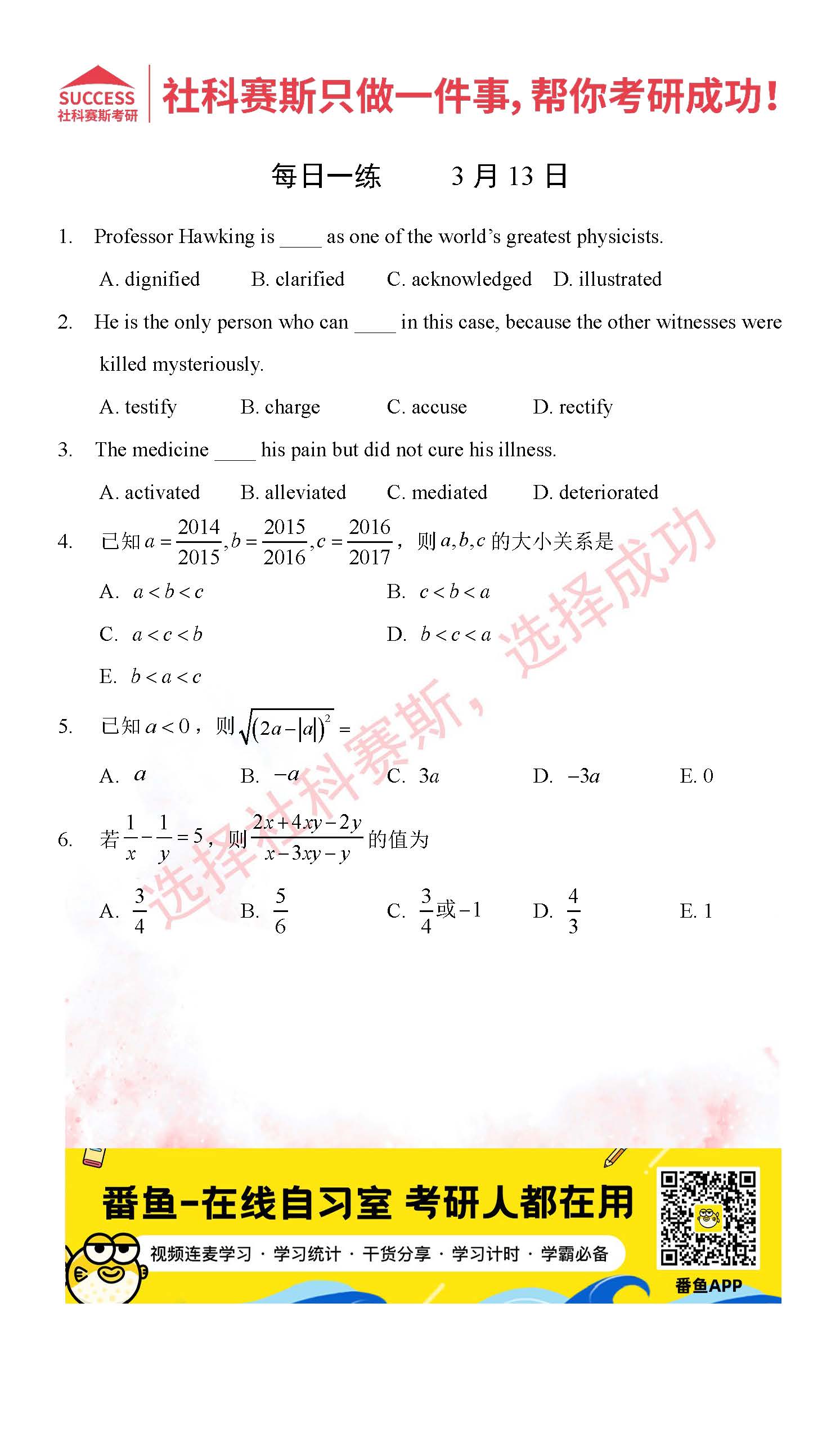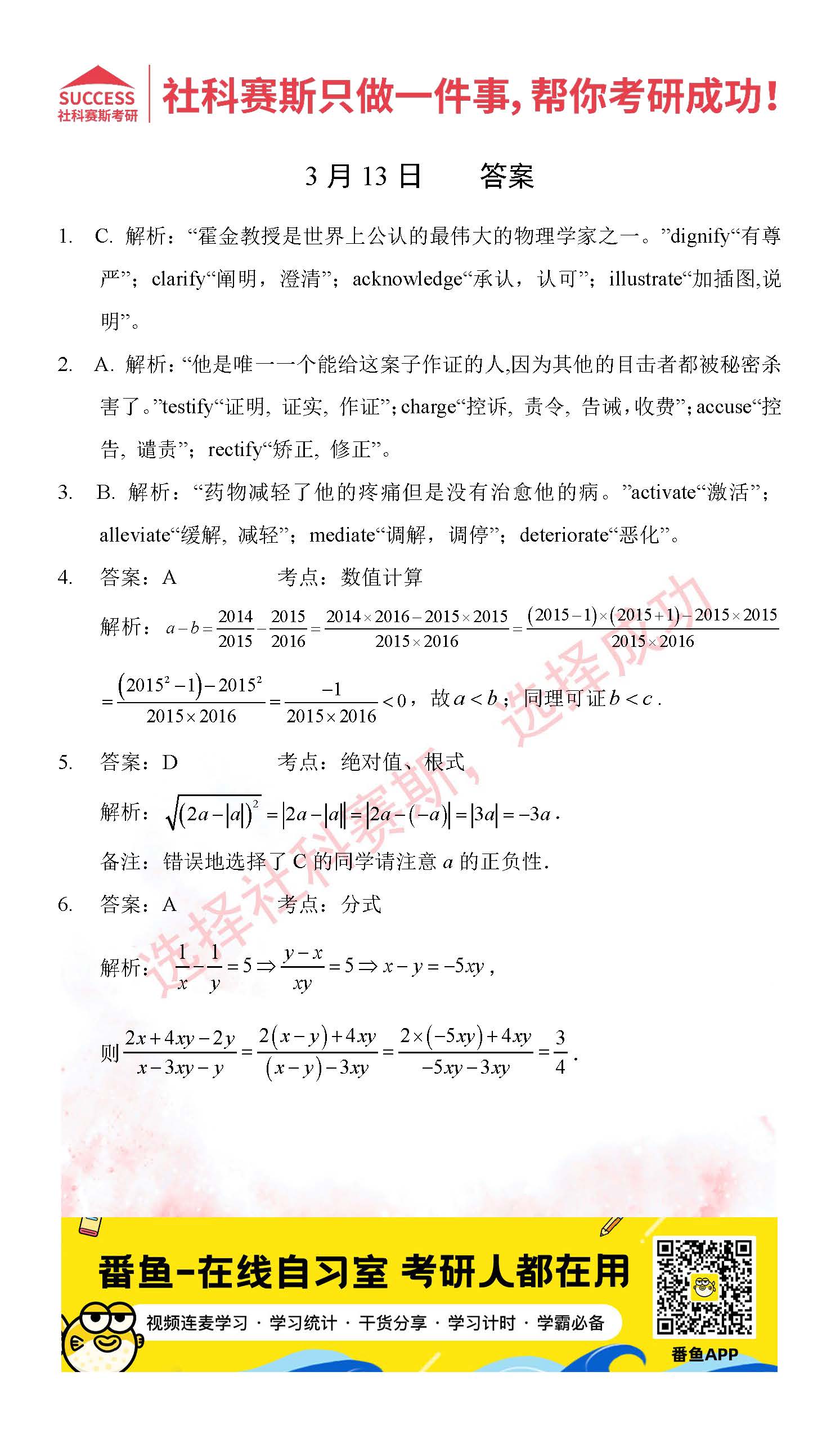2022考研每日一練:3月13日管理類聯(lián)考每日一練及答案