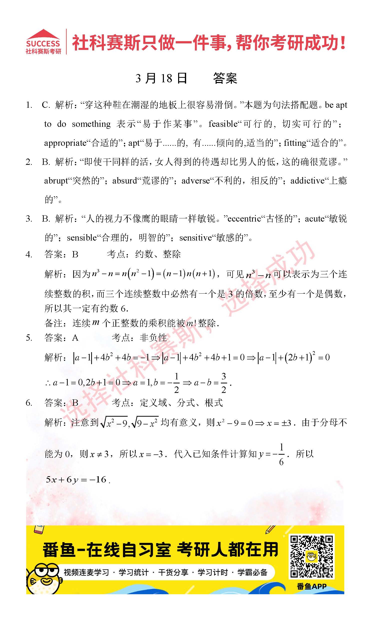 ?以上就是社科賽斯考研網小編為大家整理2022考研每日一練:3月18日管理類聯考每日一練及答案的全部內容,希望各位考生堅持利用起來,更多每日一練內容請持續關注社科賽斯考研網。