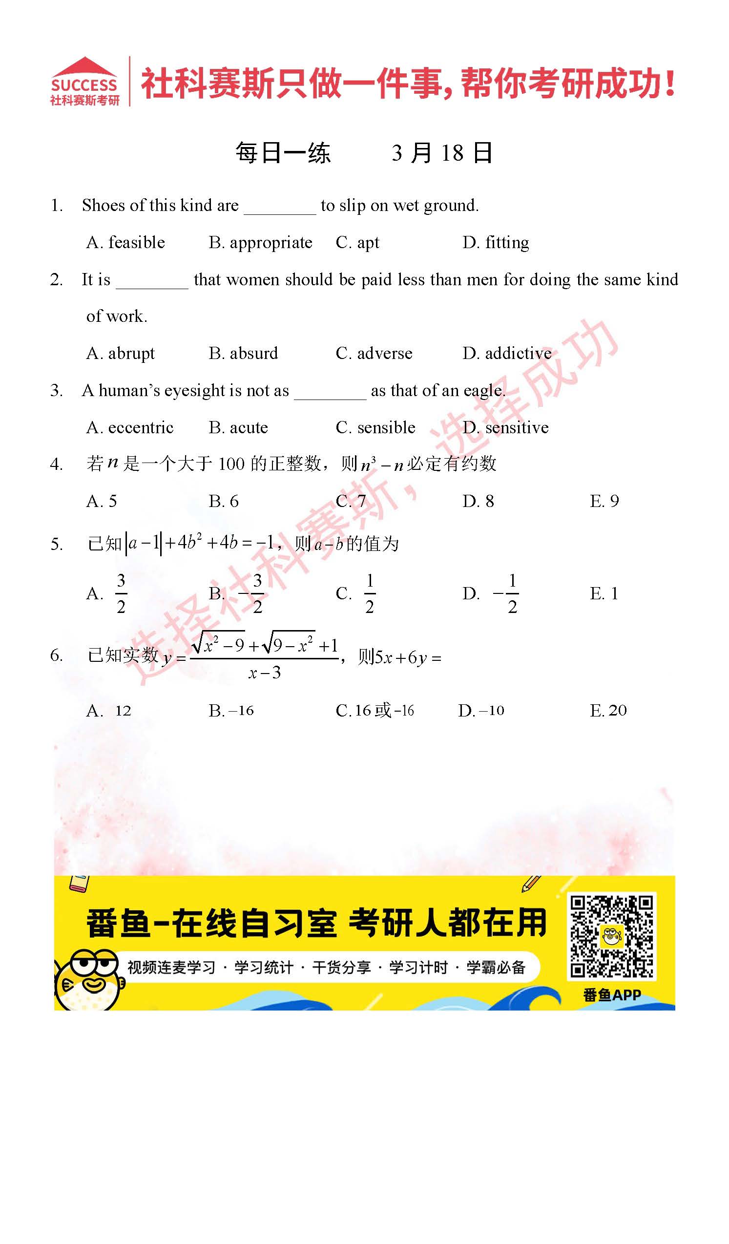 2022考研每日一練:3月18日管理類聯考每日一練及答案
