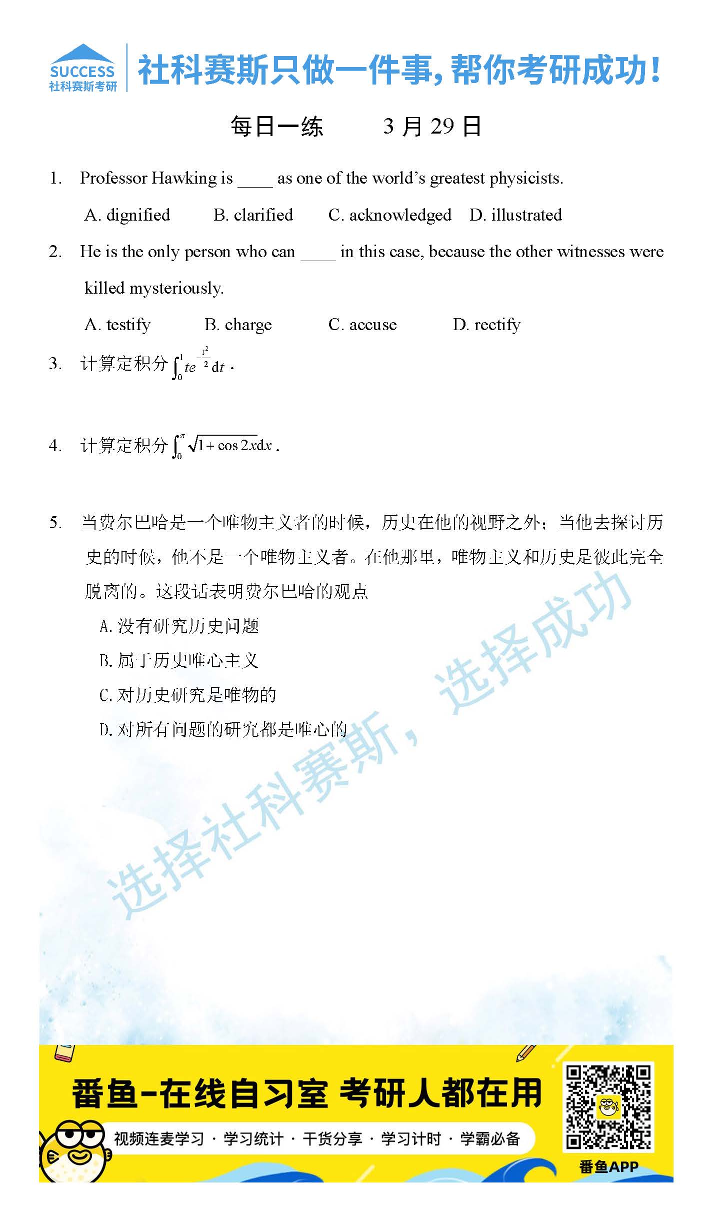 考研是一場持久戰,保持良好的學習習慣,是能確保復習高效的關鍵。今天社科賽斯考研網小編整理了“2022考研每日一練:3月29日管理類聯考每日一練及答案”的內容,希望能對廣大考生有所幫助。