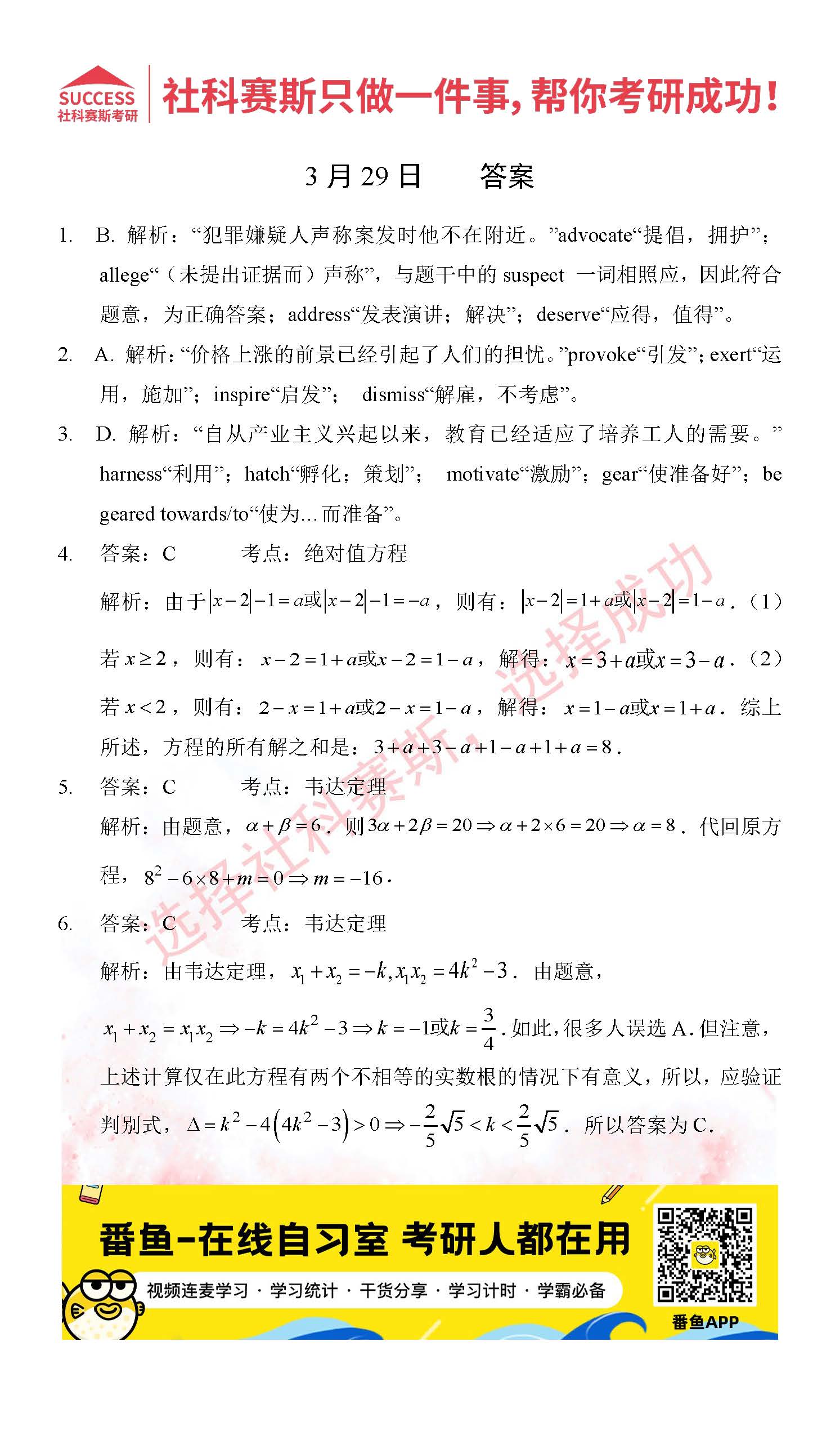 ?以上就是社科賽斯考研網小編為大家整理2022考研每日一練:3月29日管理類聯考每日一練及答案的全部內容,希望各位考生堅持利用起來,更多每日一練內容請持續關注社科賽斯考研網