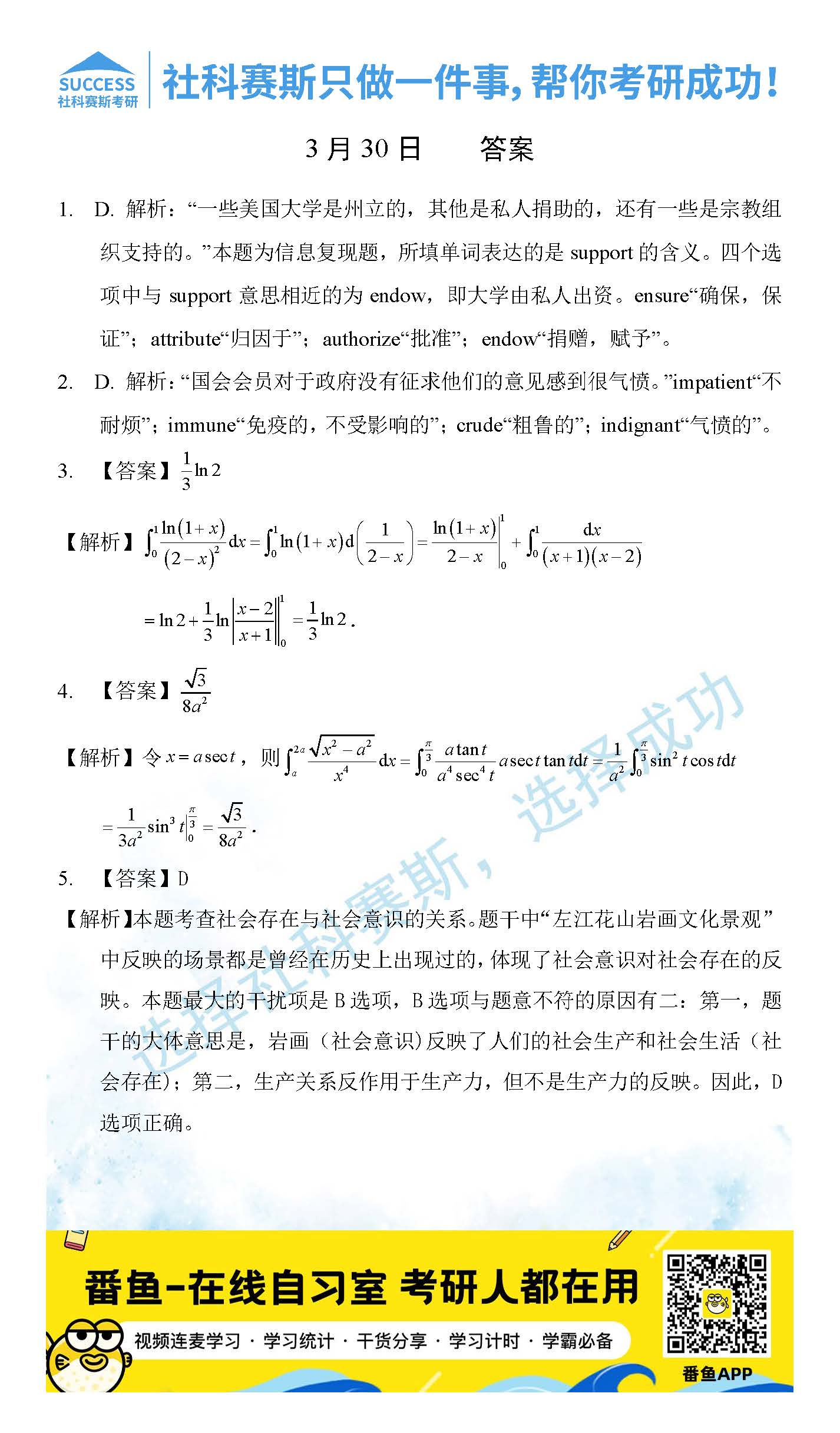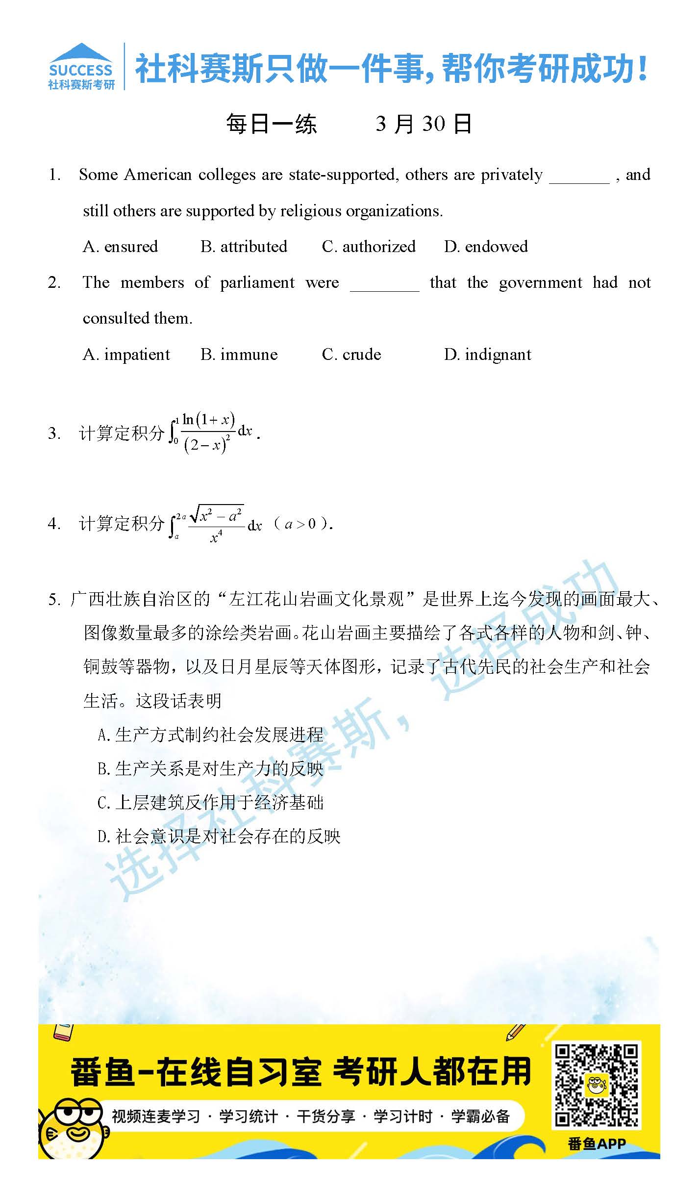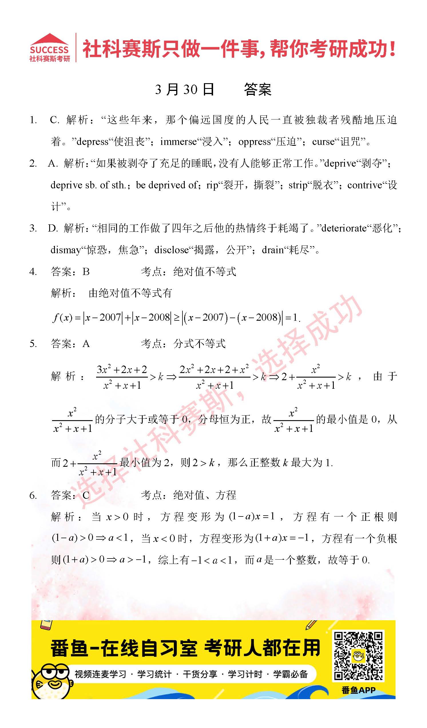 ?以上就是社科賽斯考研網小編為大家整理2022考研每日一練:3月30日管理類聯考每日一練及答案的全部內容,希望各位考生堅持利用起來,更多每日一練內容請持續關注社科賽斯考研網