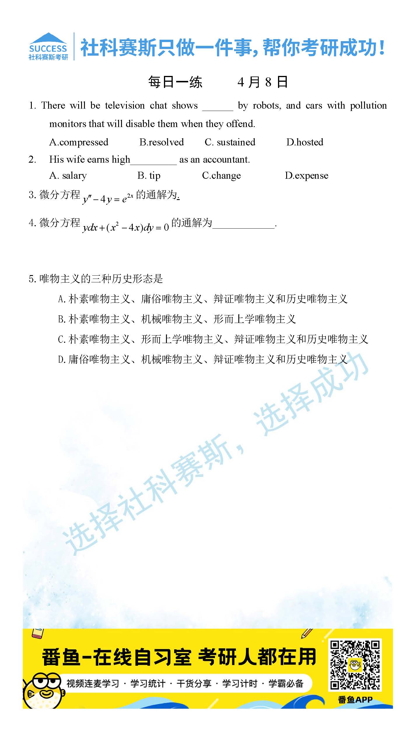 2022考研每日一練:4月8日管理類聯考每日一練及答案