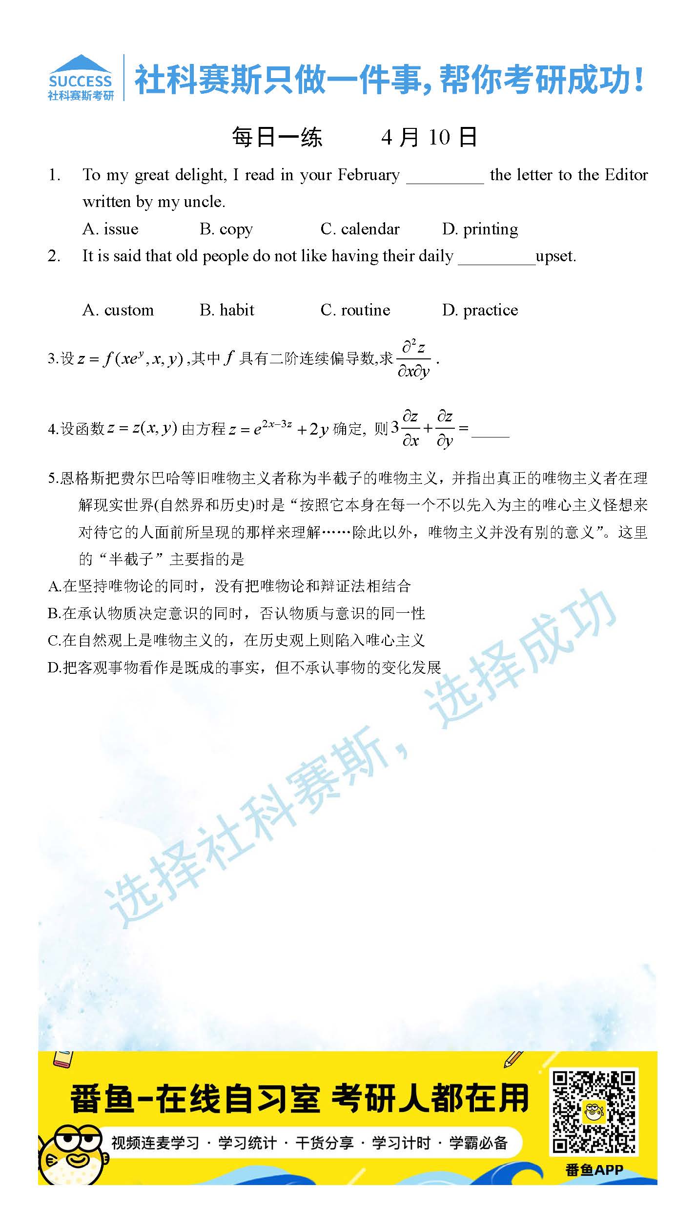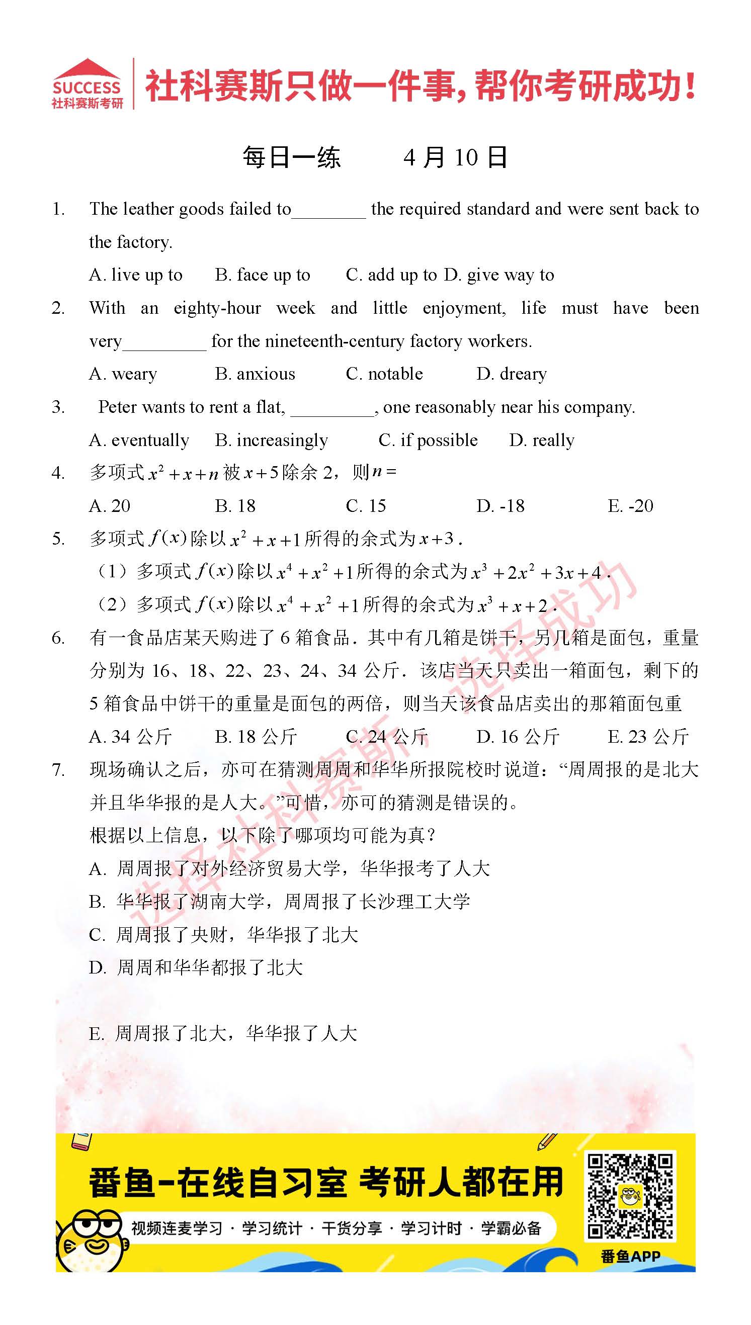 2022考研每日一練:4月10日管理類聯考每日一練及答案