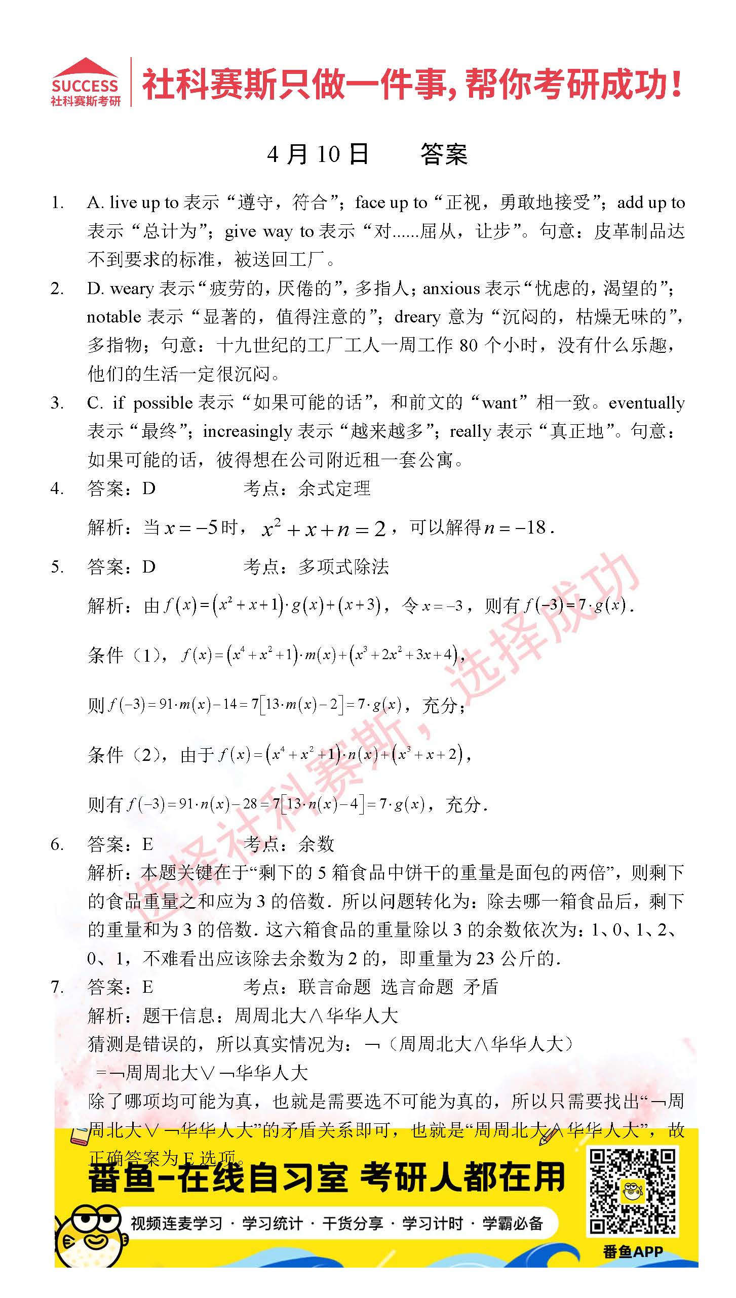 ?以上就是社科賽斯考研網小編為大家整理2022考研每日一練:4月10日管理類聯考每日一練及答案的全部內容,希望各位考生堅持利用起來,更多每日一練內容請持續關注社科賽斯考研網