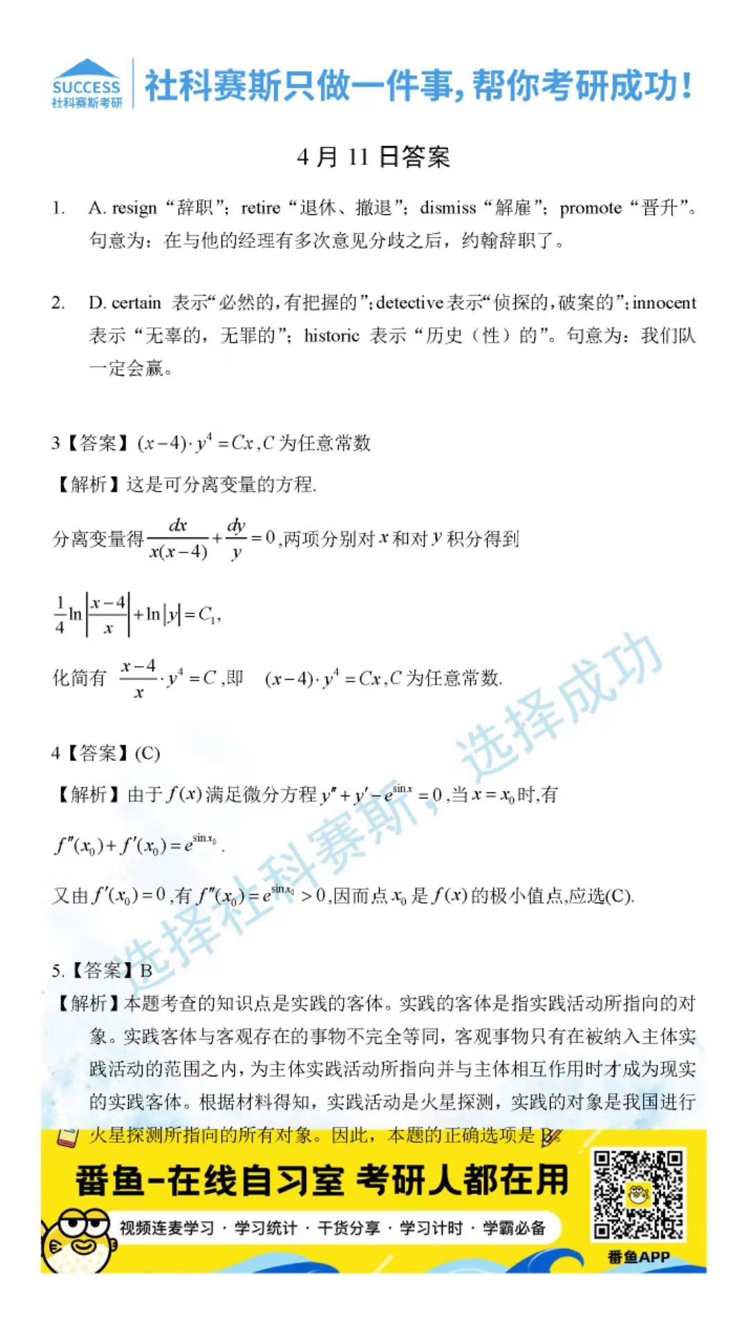 ?以上就是社科賽斯考研網小編為大家整理2022考研每日一練:4月11日管理類聯考每日一練及答案的全部內容,希望各位考生堅持利用起來,更多每日一練內容請持續關注社科賽斯考研網
