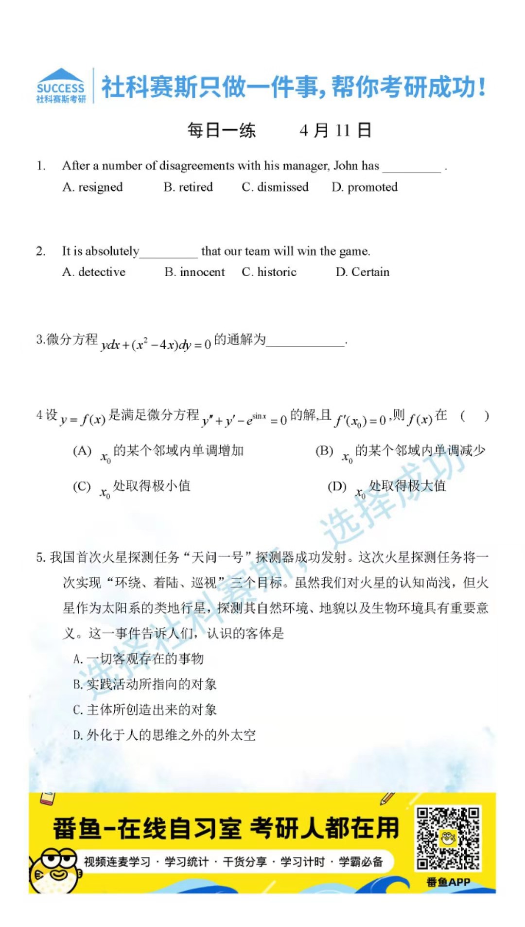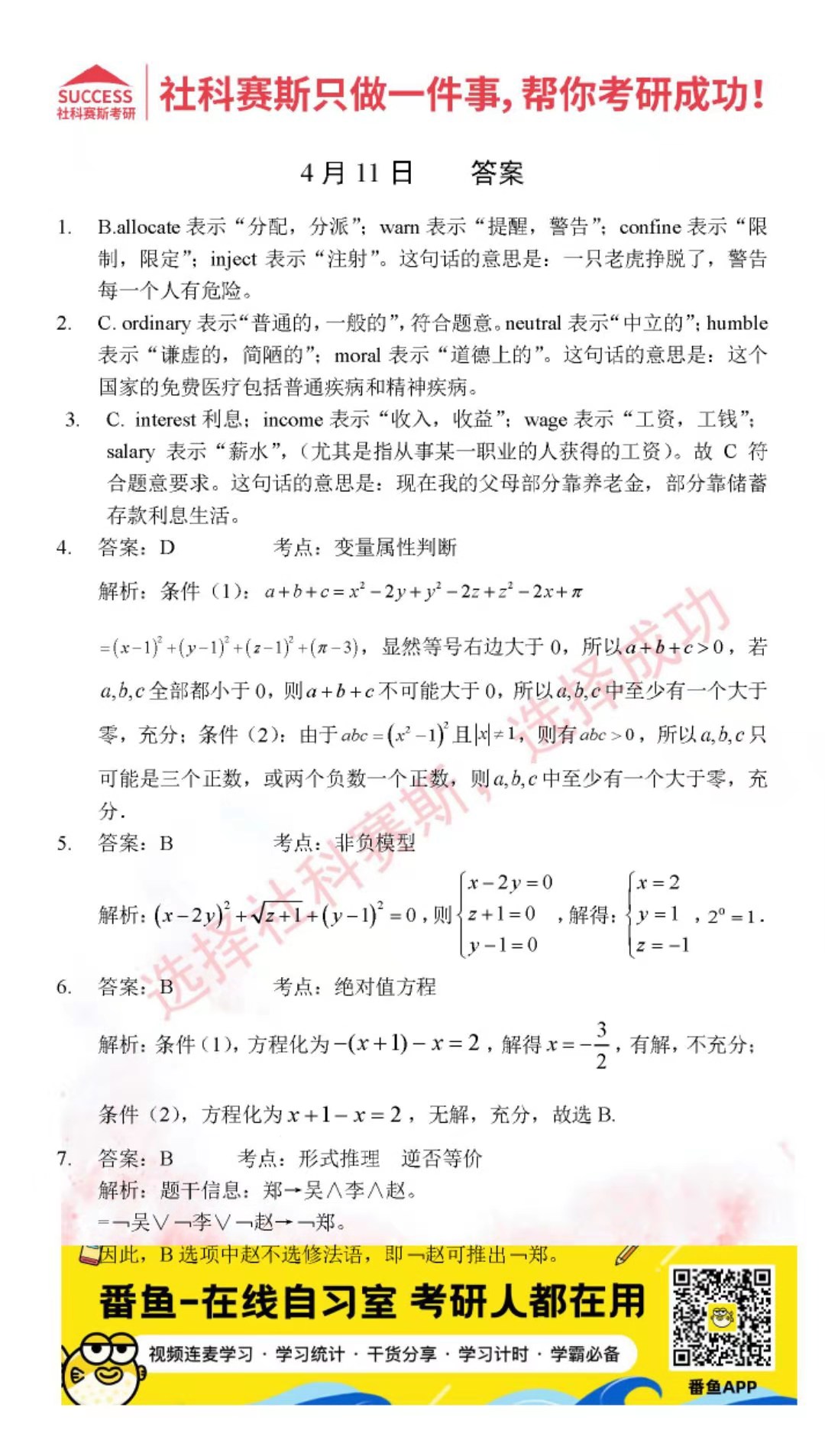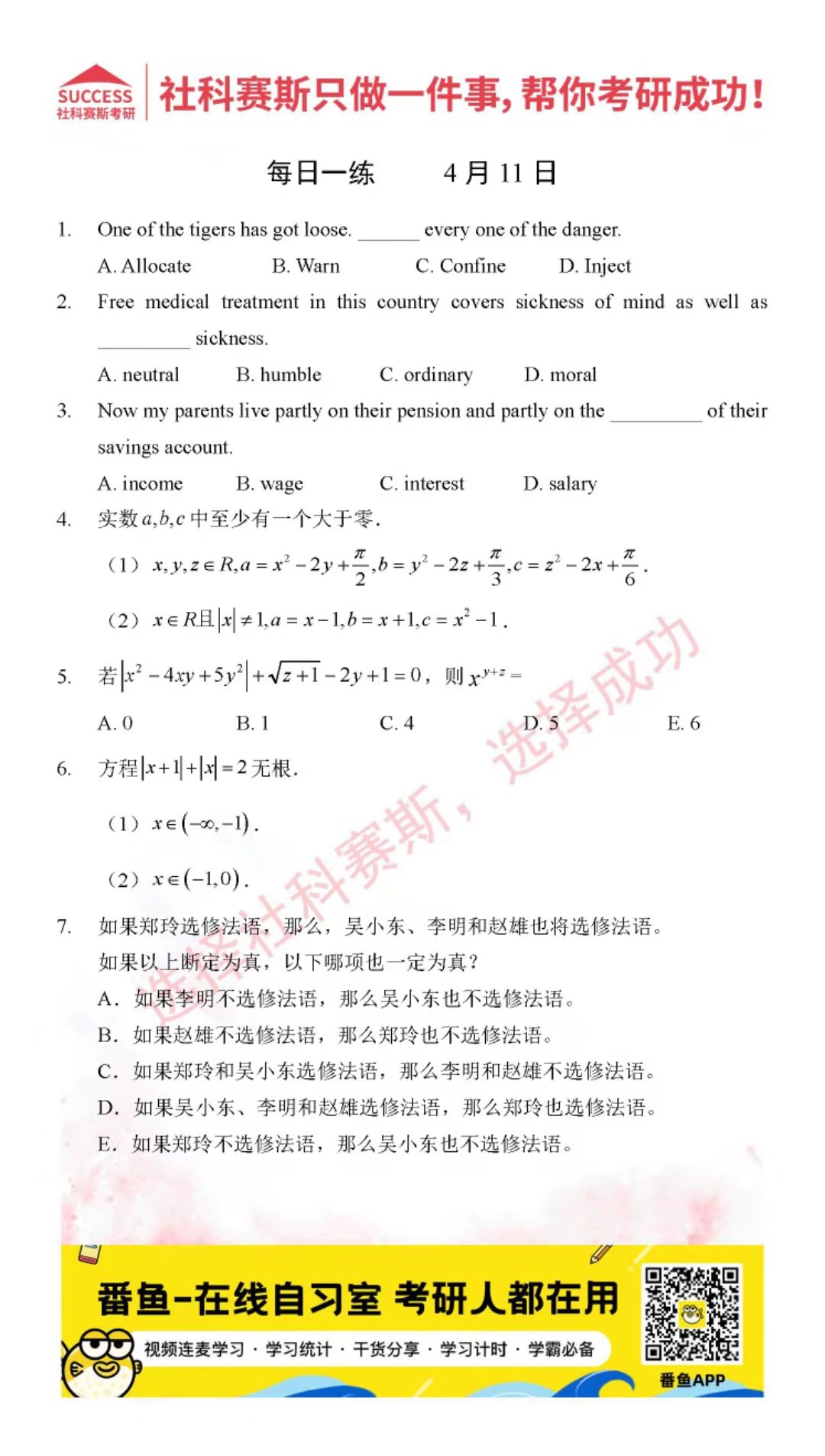 2022考研每日一練:4月11日管理類聯考每日一練及答案